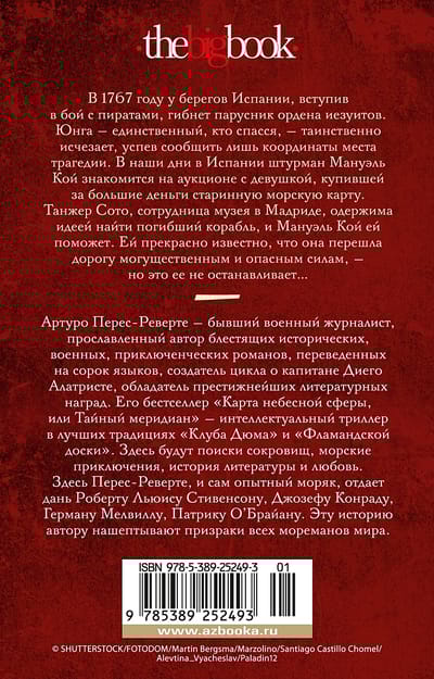 1767 год, февраль. Близ берегов Испании, вступив в бой с пиратами, гибнет парусник «Деи Глория», принадлежащий ордену иезуитов. Юнга — единственный, кто спасся, — таинственно исчезает, не успев толком рассказать о случившемся. Все, что он успел сообщить, — координаты места трагедии... Испания, наши дни. Штурман Мануэль Кой, на время лишенный права заниматься судовой деятельностью за то, что посадил судно на мель, знакомится на аукционе с девушкой, купившей за большие деньги старинную морскую карту. Танжер Сото, сотрудница музея в Мадриде, маниакально одержима идеей найти погибший корабль, шедший, как она полагает, с грузом чрезвычайной важности. Мануэля Коя она берет в помощники как опытного специалиста по навигации. Девушке прекрасно известно, что она перешла дорогу могущественным и опасным силам, способным пойти на все, только бы устранить соперницу, — но это ее не останавливает… Артуро Перес-Реверте — бывший военный журналист, прославленный автор блестящих исторических, военных, приключенческих романов, переведенных на сорок языков, создатель цикла о капитане Диего Алатристе, обладатель престижнейших литературных наград. Его бестселлер «Карта небесной сферы, или Тайный меридиан» — интеллектуальный триллер в лучших традициях «Клуба Дюма» и «Фламандской доски». Здесь витают призраки всех мореманов мира. Здесь Перес-Реверте, и сам опытный моряк, отдает дань Роберту Льюису Стивенсону, Джозефу Конраду, Герману Мелвиллу, Патрику О’Брайану. Здесь морские приключения неотделимы от истории, литературы и любви.
