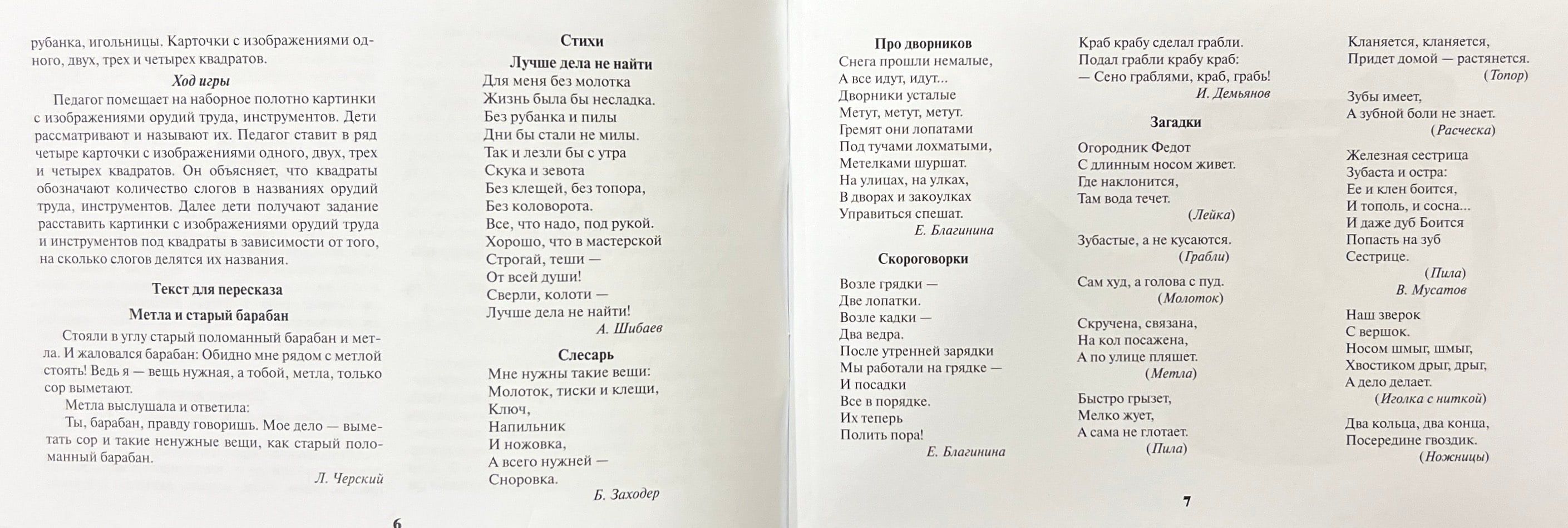 Пособие включает в себя наглядный дидактический материал, необходимый практически всем специалистам ДОУ. Это комплект предметных картинок по лексической теме «Орудия труда. Инструменты», а также авторские загадки, стихи и дидактические игры с использованием материалов пособия.