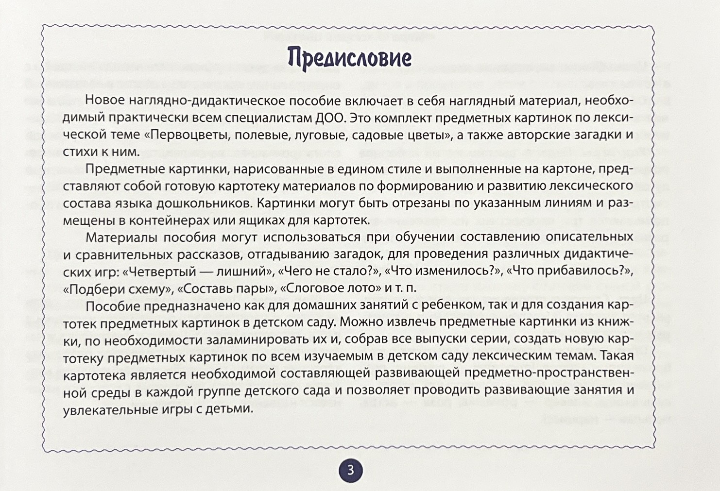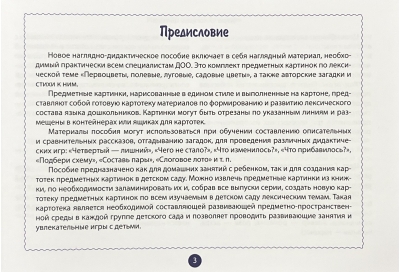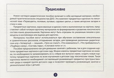 Пособие предназначено как для домашних занятий с ребенком, так и для создания картотек предметных картинок в детском саду. Можно извлечь предметные картинки из книжки, по необходимости заламинировать их и, собрав все выпуски серии, создать новую картотеку предметных картинок по всем изучаемым в детском саду лексическим темам. Такая картотека является необходимой составляющей развивающей предметно-пространственной среды в каждой группе детского сада и позволяет проводить развивающие занятия и увлекательные игры с детьми.