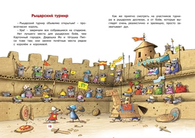 «Сказки Картонного городка» – это весёлые истории о самом удивительном, самом необыкновенном городке на свете. Здесь всё сделано из картона – дома, машины, самолёты, даже корабли и космические ракеты. А живёт-поживает в этом городке забавный мышиный народ, с которым непременно стоит познакомиться! В Картонном городке жизнь бьёт ключом! Его обитатели весело проводят время, особенно дружное семейство Папмайеров. Вот уж кто всегда найдёт, чем себя занять, и не пропустит ни одного важного события, будь то авиационный парад, съёмки кинофильма или рыцарский турнир. Мышата Йоги и Берт Папмайеры даже приняли в нём участие. И совсем не важно, что кое-кто на этом турнире вместо рыцарского меча держал... обыкновенную швабру. Главное – кровожадный дракон был побеждён!