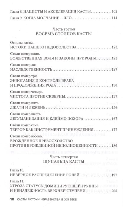 Америка, Индия и Третий Рейх - что общего между этими странами? В каждой из них зародилась своя уникальная кастовая система, разделившая людей на низшие и высшие сорта, и подготовившая почву для современных шовинистических движений по всему миру. В своей книге лауреат Пулитцеровской премии, журналистка Изабель Уилкерсон рассматривает способы угнетения и ограничения людей в правах на основании их национальности, цвета кожи или места рождения, а также показывает, какой ущерб это наносит и их качеству жизни, и экономике в целом. Ее книга доказывает: даже несмотря на прогресс, кастовая система все еще существует, лишая людей равных прав и возможностей, убивая заложенный в них человеческий потенциал. Сплетенная из множества человеческих историй, пронизанных несправедливостью, гневом и болью, книга «Касты» наглядно показывает несостоятельность искусственных правил и предрассудков, которые привели к холокосту, протестам Ганди и законам Джима Кроу - а в XXI веке к масштабным расовым протестам в Америке. Это также противоядие от идей шовинизма и ксенофобии, которые до сих пор овладевают умами людей по всему миру.