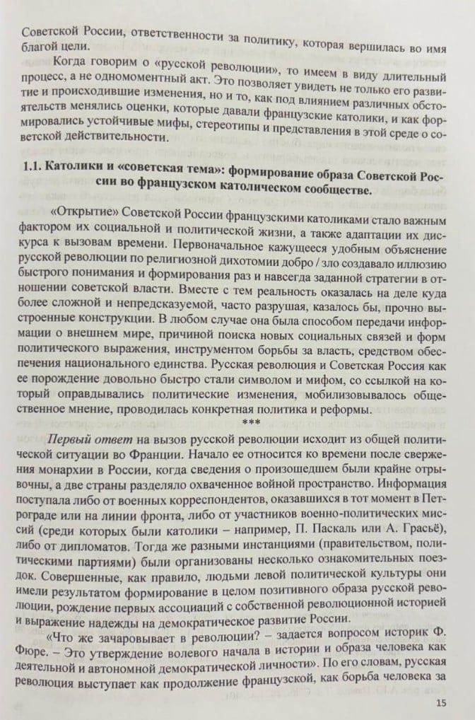 В монографии исследуется проблема репрезентации «советского мира» во французском католическом общественном мнении в период между двумя мировыми войнами. В центре внимания — восприятие французскими католиками (интеллектуалами, прессой, партиями и движениями) русской революции и строительства социализма в СССР, которые оказали большое влияние