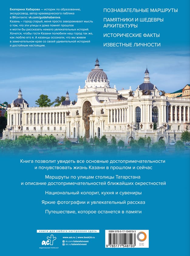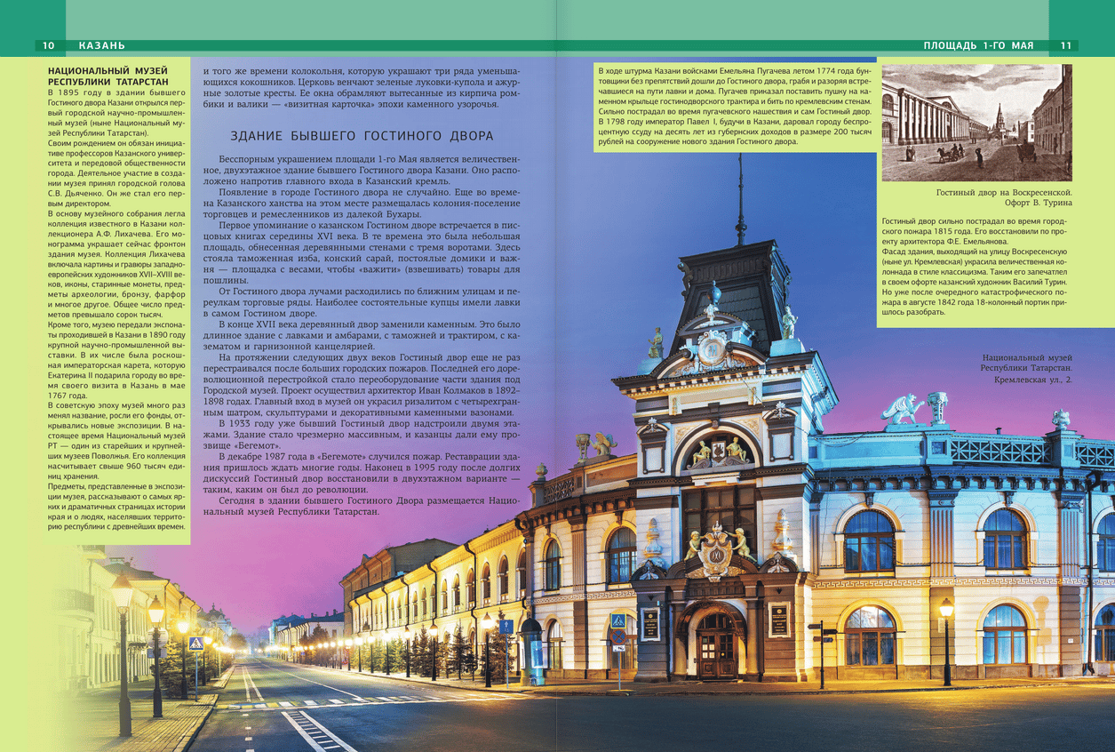 О самых красивых и интересных местах в городе и его окрестностях рассказано в этом издании. С помощью книги вы можете планировать маршрут прогулки по городу, узнаете, что обязательно стоит посмотреть. Этот путеводитель — отличный подарочный альбом для тех, кто любит гулять — своеобразный стимул к посещению новых интересных мест. А также замечательный подарок для тех, кто не имеет возможности для поездки в «третью столицу России», поскольку информация и фото, приведенные в книге, помогают путешествовать по Казани, не выходя из дома, погружаясь в познавательный рассказ и выразительные фотографии.