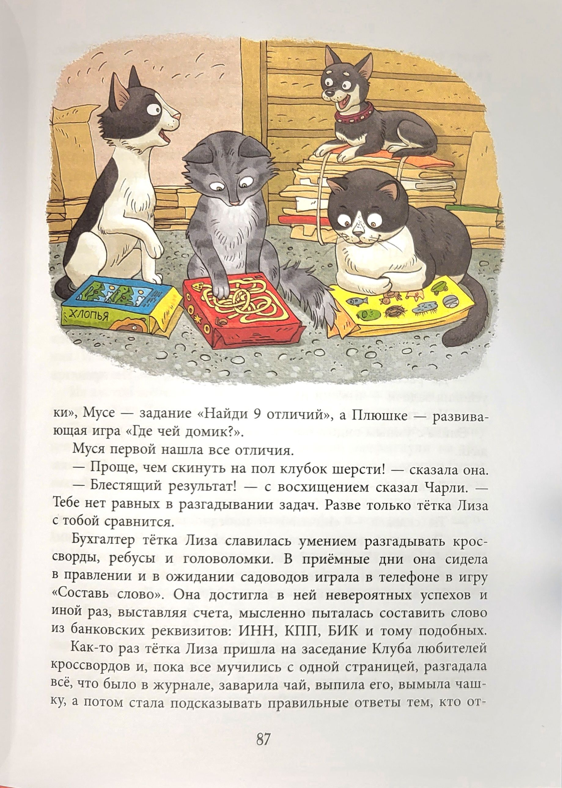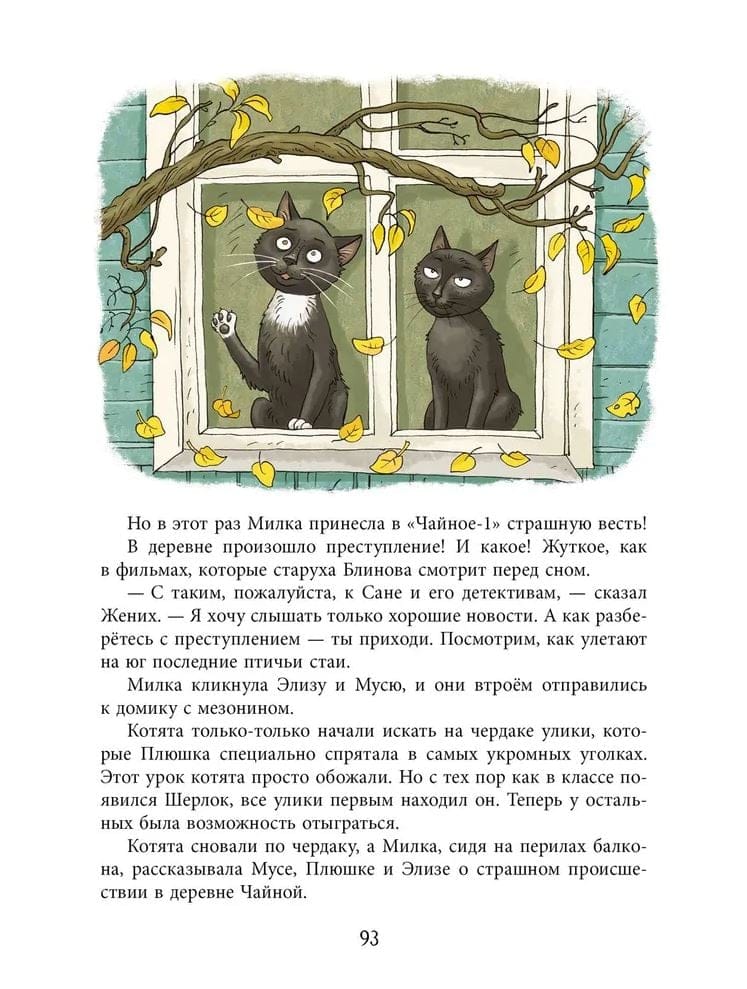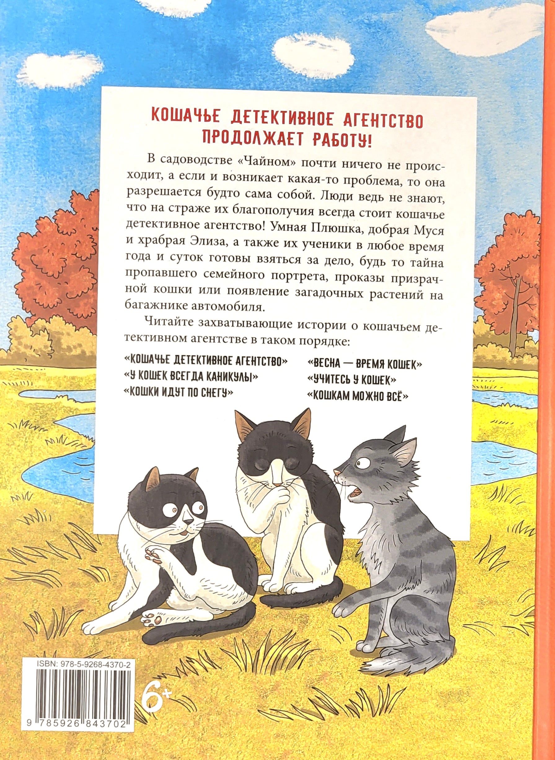 Куда пропадают игрушки котёнка Геши? Почему на багажнике белой машины появляются листья растений, которые в «Чайном» не встретишь? Кто и зачем передвигает с места на место предметы то там, то тут? Муся, Плюшка, Элиза и их ученики разгадают тайну пропавшего семейного портрета, помогут председателю выяснить, кому принадлежат заброшенные участки, и научат впечатлительную кошку Милку не придумывать страшные истории до того, как будут обнаружены все улики. Иллюстрации к книге сделала Ольга Громова. Её весёлые рисунки приглашают детей и взрослых в уютный добрый мир садоводства «Чайное». «Каждому нужна своя кошка» — седьмая, но не последняя книга серии про кошачье детективное агентство. Кошки, коты, котята и собаки-детективы не собираются сидеть, сложа лапы.