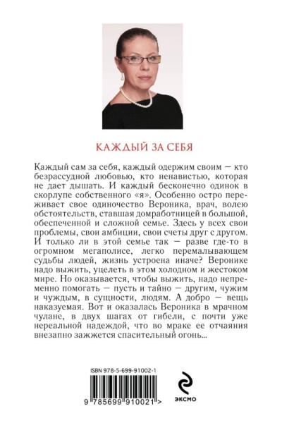 Каждый сам за себя, каждый одержим своим – кто безрассудной любовью, кто ненавистью, которая не дает дышать. И каждый бесконечно одинок в скорлупе собственного "я". Особенно остро переживает свое одиночество Вероника, врач, волею обстоятельств, ставшая домоработницей в большой, обеспеченной и сложной семье. Здесь у всех свои проблемы, свои амбиции, свои счеты друг с другом. И только ли в этой семье так – разве где-то в огромном мегаполисе, легко перемалывающем судьбы людей, жизнь устроена иначе? Веронике надо выжить, уцелеть в этом холодном и жестоком мире. Но оказывается, чтобы выжить, надо непременно помогать – пусть и тайно – другим, чужим и чуждым, в сущности, людям. А добро – вещь наказуемая. Вот и оказалась Вероника в мрачном чулане, в двух шагах от гибели, с почти уже нереальной надеждой, что во мраке ее отчаяния внезапно зажжется спасительный огонь…