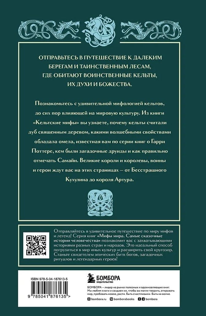 Независимо от того, являетесь ли вы поклонником мифологии или просто интересуетесь историей и культурой, эта книга несет в себе бесконечный источник вдохновения и удивления — вы познакомитесь с феями и другими волшебными существами, которые вдохновили Толкиена при создании вселенной «Властелина колец», узнаете о том, как появилась легенда о короле Артуре, Мерлине и Моргане. Эта книга станет прекрасным подарком для всех, кто ищет новые знания. Не упустите возможность раскрыть тайны и мудрость кельтской мифологии с книгой «Кельтские мифы». Откройте дверь в увлекательный и загадочный мир мифов и легенд! Серия книг «Мифы мира. Самые сказочные истории человечества» познакомит вас с захватывающими историями разных стран и народов. Это идеальный способ погрузиться в мир иных культур и расширить свой кругозор. Станьте свидетелем эпических битв богов, загадочных ритуалов и легендарных героев!