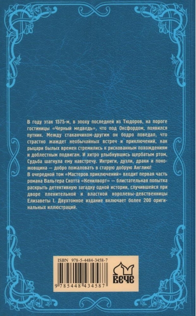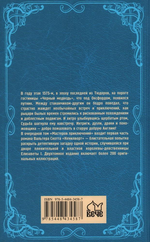 В году этак 1575-м, в эпоху последней из Тюдоров, на пороге гостиницы «Черный медведь», что под Оксфордом, появился путник. Между стаканчиком-другим он бодро поведал, что страстно жаждет необычайных встреч и приключений, как рыцари былых времен стремились к рискованным похождениям и доблестным подвигам. И хитро улыбнувшись щербатым ртом, Судьба шагнула ему навстречу. Интриги, дуэли, драки и поножовщина - добро пожаловать в старую добрую Англию!В очередной том «Мастеров приключений» входит первая часть романа Вальтера Скотта «Кенилворт» - блистательная попытка раскрыть детективную загадку одной истории, случившейся при дворе пленительной и властной королевы-девственницы Елизаветы I. Двухтомное издание включает более 200 оригинальных иллюстраций.