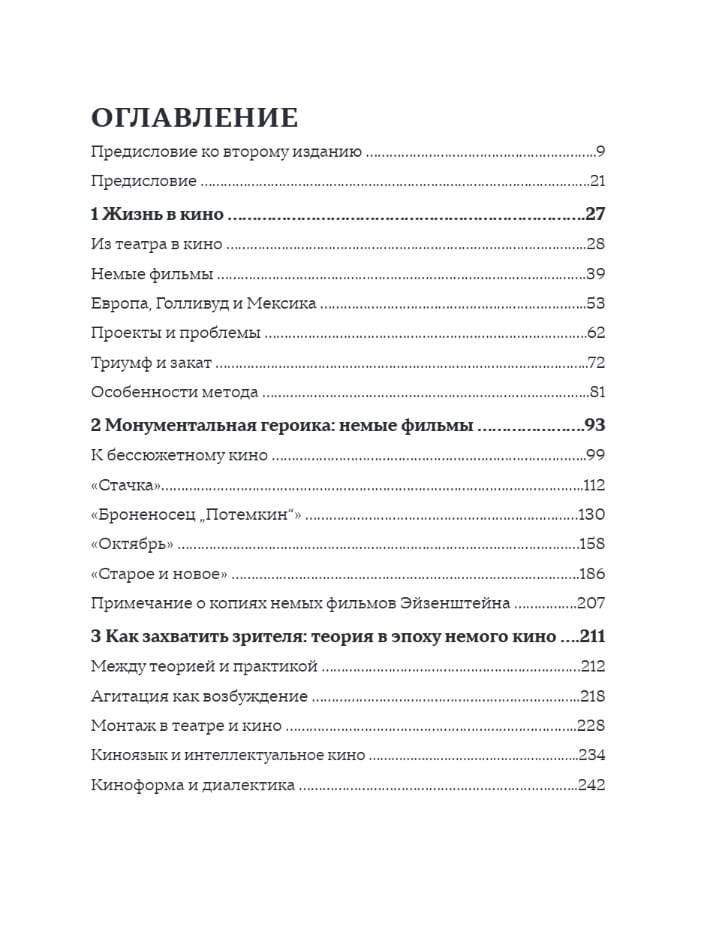 В центре внимания Бордуэлла – детальный анализ всех элементов мизансцены, композиции кадра, движения камеры, освещения, работы с актерами, звука и, конечно, монтажа. От ранних театральных экспериментов Эйзенштейна до «Ивана Грозного», охватывая все основные фильмы: «Стачка», «Броненосец Потёмкин», «Октябрь», «Генеральная линия», «Александр Невский», «Иван Грозный» (части 1 и 2).