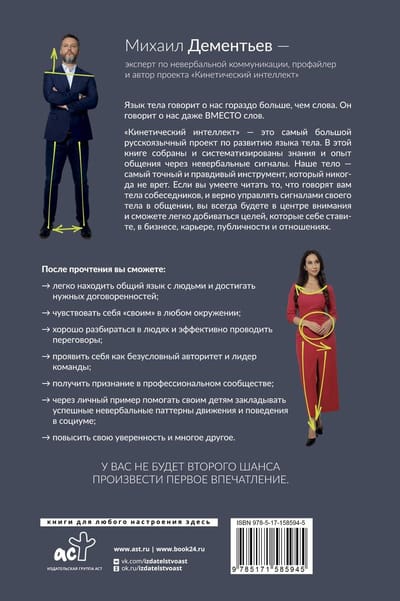 «Кинетический интеллект» — это самый большой русскоязычный проект по развитию языка тела. В этой книге собраны и систематизированы знания и опыт общения через невербальные сигналы. Наше тело, — самый точный и правдивый инструмент, который никогда не врет. Если вы умеете читать то, что говорят вам тела собеседников, и верно управлять сигналами своего тела в общении, вы всегда будете в центре внимания и сможете легко добиваться целей, которые себе ставите, в бизнесе, карьере, публичности и отношениях. После прочтения вы сможете: - легко находить общий язык с людьми и достигать нужных договоренностей; - чувствовать себя «своим» в любом окружении; - хорошо разбираться в людях и эффективно проводить переговоры; - проявить себя как безусловный авторитет и лидер команды; - получить признание в профессиональном сообществе; - повысить свою уверенность и многое другое. У вас не будет второго шанса произвести первое впечатление.