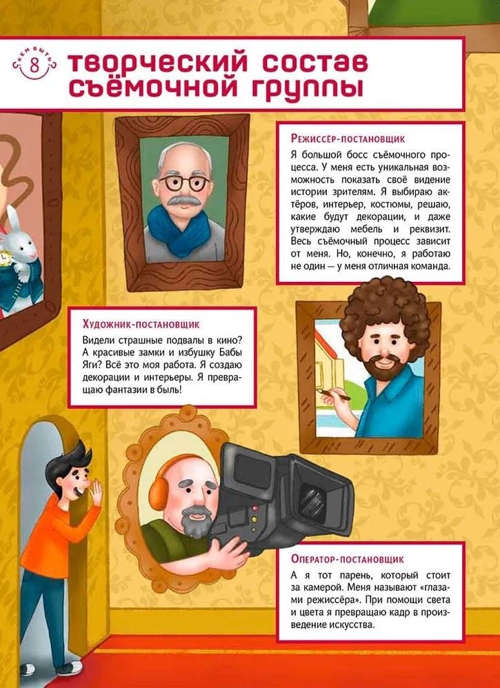 Кино — сказочный, волшебный, невероятный мир, в котором нет слова «невозможно». В нём чудеса совершаются на каждом шагу. Всем хотелось бы побывать на съёмочной площадке, узнать киносекреты или сняться в настоящем фильме. Но ведь туда не так просто попасть. Поэтому сотрудники киноиндустрии решили поделиться тайнами своей работы. Вы узнаете, как создают фильмы и какие профессии нужны в кинопроизводстве. Может быть, одну из профессий вы изберёте для своей жизни и создадите самый великий фильм всех времён и народов!