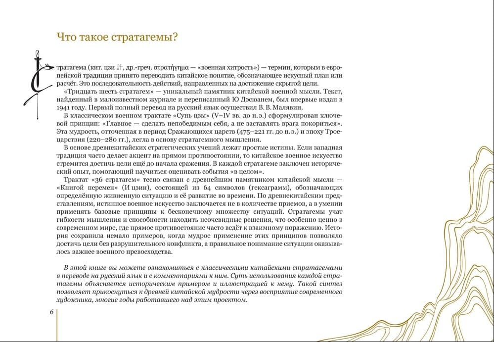 Стратагемы – военный план (уловка), с которым достигается поставленная цель в определённой ситуации. В этой книге вы можете ознакомиться с классическим китайскими стратагемами в переводе на русский язык и с комментариями к ним. Суть использования стратагемы объясняется историческим примером и акварельной иллюстрацией к каждой из них (всего 37 полнолистовых репродукции. Многие иллюстрации дополнены авторскими комментариями художницы. Книга будет интересна читателям, увлекающимся китайской философией и культурой. Это иллюстрированное издание станет прекрасным подарком на самый взыскательный вкус.