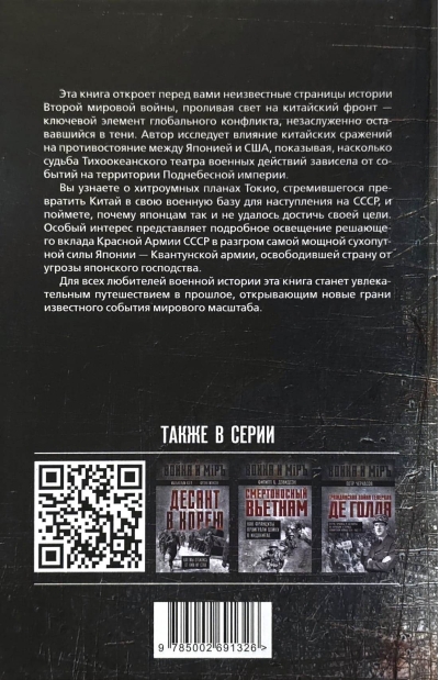 Эта книга откроет перед вами неизвестные страницы истории Второй мировой войны, проливая свет на китайский фронт — ключевой элемент глобального конфликта, незаслуженно остававшийся в тени. Автор исследует влияние китайских сражений на противостояние между Японией и США, показывая, насколько судьба Тихоокеанского театра военных действий зависела от событий на территории Поднебесной империи. Вы узнаете о хитроумных планах Токио, стремившегося превратить Китай в свою военную базу для наступления на СССР, и поймете, почему японцам так и не удалось достичь своей цели. Особый интерес представляет подробное освещение решающего вклада Красной Армии СССР, освободившей страну от угрозы японского господства, в разгром самой мощной сухопутной силы Японии — Квантунской армии. Для всех любителей военной истории эта книга станет увлекательным путешествием в прошлое, открывающим новые грани известного события мирового масштаба.