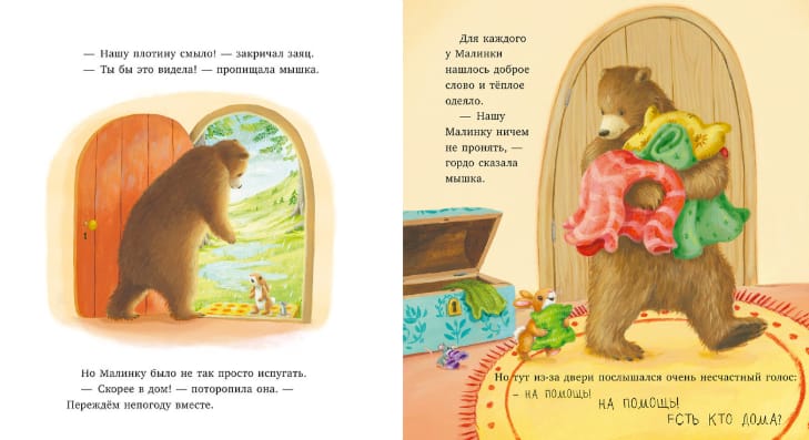 Дождь всё шёл и шёл, шёл и шёл… Лесные звери совсем было отчаялись, но медвежонок Малинка смогла каждому протянуть лапу помощи!