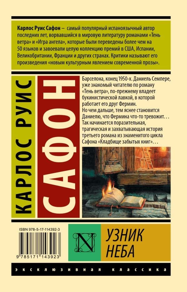 Барселона, конец 1950-х. Даниель Семпере, уже знакомый читателю по роману «Тень ветра», по-прежнему владеет букинистической лавкой, в которой работает его друг Фермин. Но чем дальше, тем яснее становится Даниелю, что Фермина что-то тревожит… Так начинается поразительная, трагическая и захватывающая история третьего романа из знаменитого цикла Сафона «Кладбище забытых книг»…