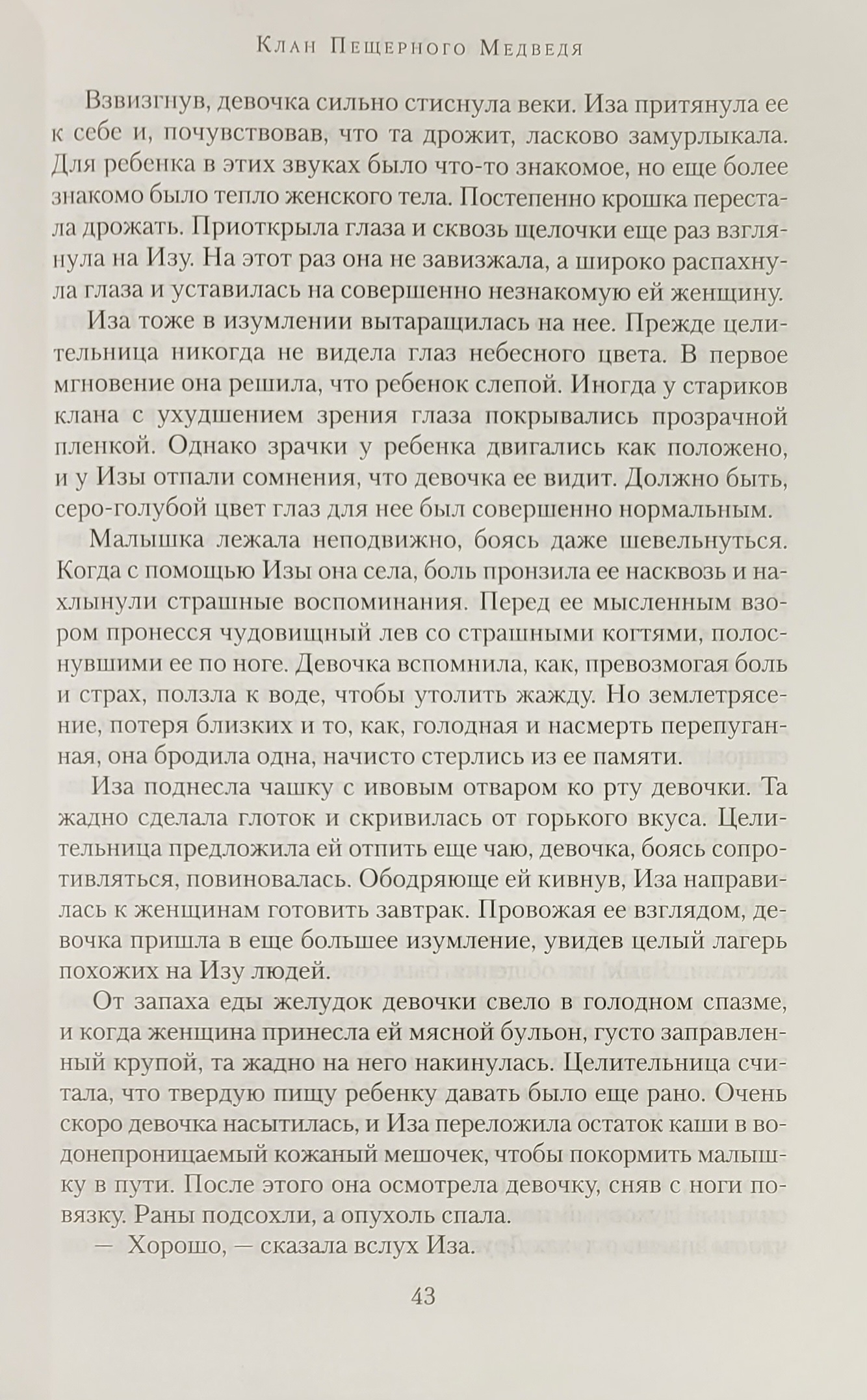 Стихийное бедствие приводит к гибели соплеменников пятилетней Эйлы, и малышка вынуждена скитаться одна по чужой и полной опасностей земле. Бесчувственную и умирающую от ран, нанесенных пещерным львом, ее находят люди клана Пещерного Медведя, сильно отличающиеся от ее собственного рода. Белокурая и голубоглазая Эйла кажется им невероятно уродливой и странной. Тем не менее целительница Иза проникается жалостью к несчастному ребенку. Она выхаживает Эйлу и помогает ей стать полезной для Клана, передав свои знания. Однако злобный и высокомерный юнец, которому вскоре предстоит стать вождем клана, воспринимает каждый поступок Эйлы как вызов своему авторитету. Он делает все возможное, чтобы сделать жизнь ненавистного ему существа невыносимой...