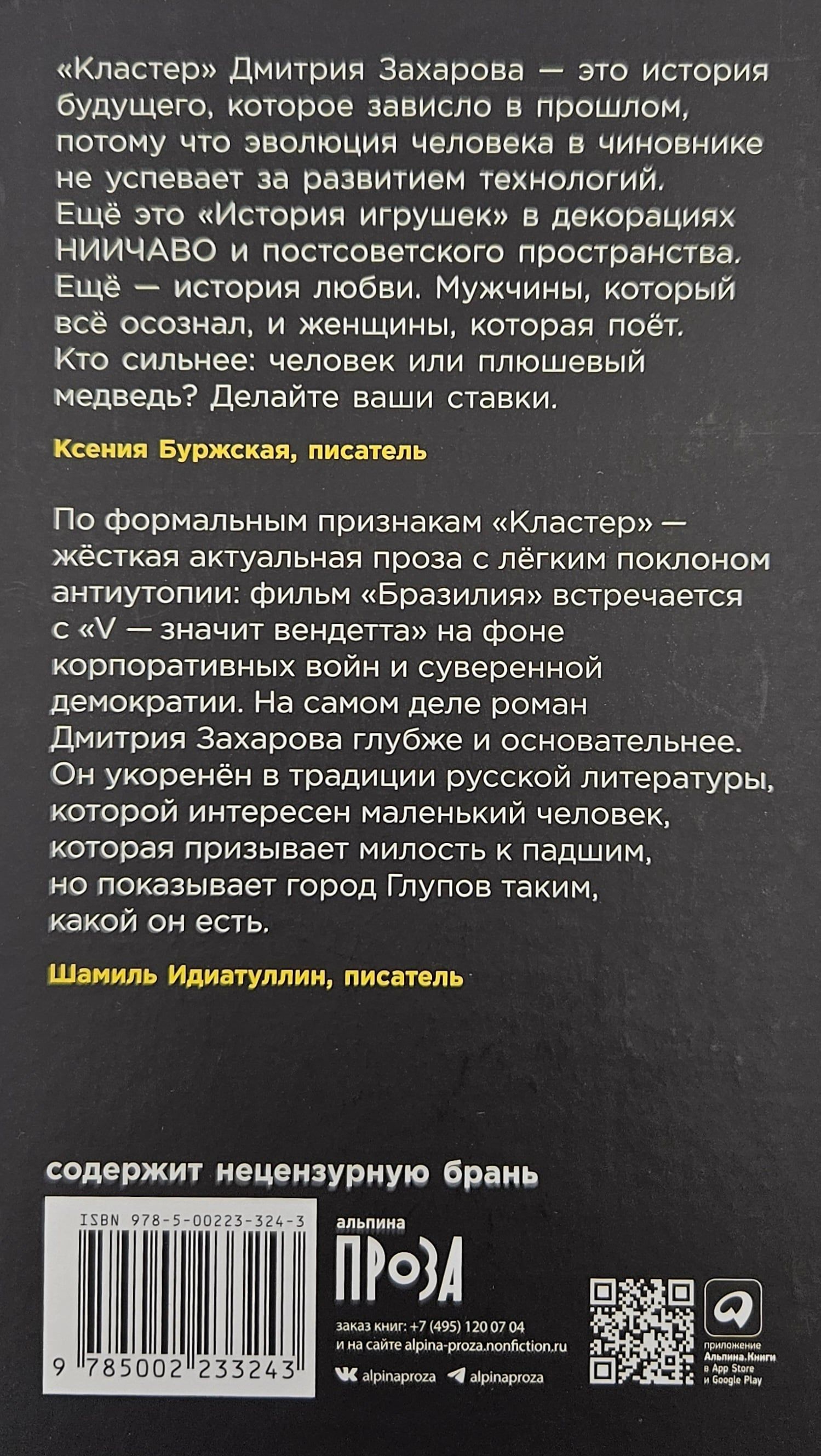 Три корпорации схлестнулись в смертельной схватке за право создавать уникальный инновационный материал. Того, кто освоит производство полупроводника арсенид голландия, ждут несметные богатства и неограниченная власть. Но дело в том, что кластер — объединённое гнездо конкурирующих корпораций — потёмкинская деревня промышленного масштаба. Главное противостояние идёт на двух уровнях: информационном и... игрушечном. Нет, это не ошибка. Побочный эффект чудо-полупроводника — ожившие игрушки, населяющие детский мир с недетскими мечтами о свободе, которую нельзя обрести без боли и потерь.