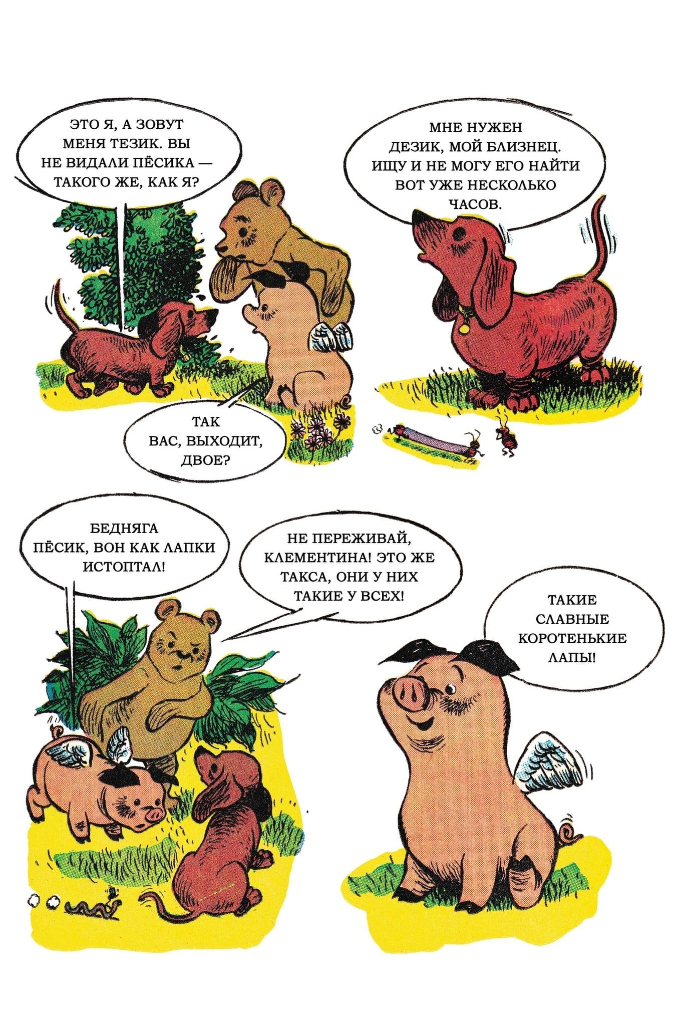 Эта свинка умеет не только умилять, но и летать. А ещё у неё есть друзья: медвежонок Эм-Эм (Медведь-Мыслитель) и кролик Бернар Пи (Пинки). Друзья знакомятся с молодым щенком таксы Тезиком, который потерял своего брата Дезика, и берутся помочь ему в его поисках. Попутно решая загадку, что за призрак поселился в норе кролика Пинки.