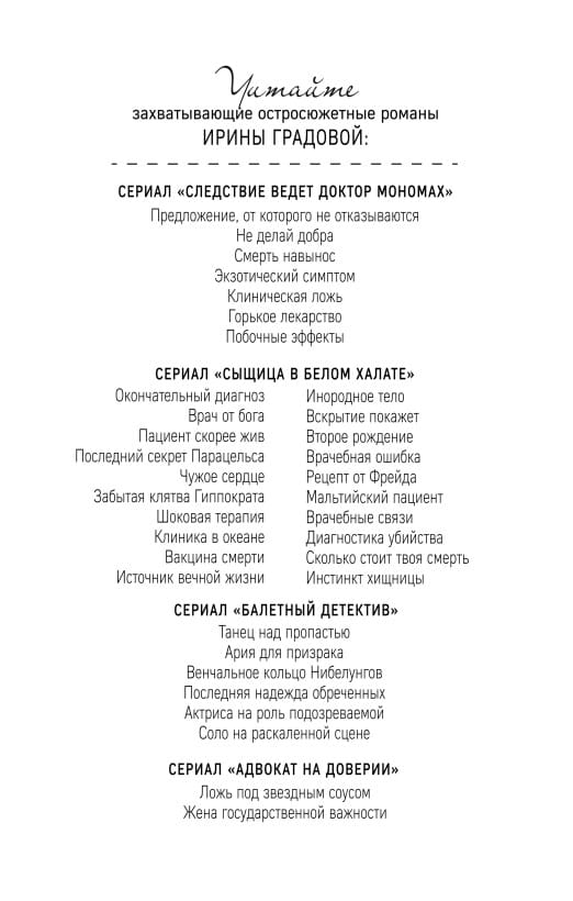 У доктора Владимира Всеволодовича Князева, более известного по прозвищу Мономах — главного героя остросюжетного романа Ирины Градовой «Клиническая ложь», — новый домашний питомец: необычной окраски очень редкий попугай. Экзотическая птица — единственный свидетель гибели бывшего хозяина Аркадия Рукояткина, а пернатый замечательно разговаривает и вполне способен указать на настоящего убийцу…