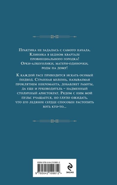 Практика не задалась с самого начала. Клиника в бедном квартале провинциального городка! Орки-наркоманы, матери-одиночки, роды на дому! К каждой расе приходится найти особый подход. Странная болезнь, называемая проклятием некроманта, добавляет работы, да еще и руководитель — надменный столичный аристократ. Рядом с ним мой пульс учащается, но глупо ожидать, что его ледяное сердце способен растопить хоть кто-то.