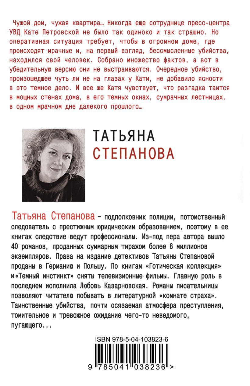 Чужой дом, чужая квартира… Никогда еще сотруднице пресс-центра УВД Кате Петровской не было так одиноко и так страшно. Но оперативная ситуация требует, чтобы в огромном доме, где происходят мрачные и, на первый взгляд, бессмысленные убийства, находился свой человек. Собрано множество фактов, а вот в убедительную версию они не выстраиваются. Очередное убийство, произошедшее чуть ли не на глазах у Кати, не добавило ясности в это темное дело. И все же Катя чувствует, что разгадка таится в мощных стенах дома, в его темных окнах, сумрачных лестницах, в одном мрачном дне далекого прошлого…