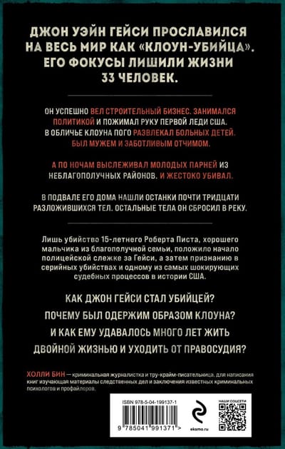 Почему Джон Гейси стал убийцей? Что побудило преуспевающего молодого человека развязать царство террора в Чикаго? И как ему удавалось несколько лет уходить от правосудия? Эта книга, основанная на воспоминаниях полицейских, адвокатов и прокуроров по делу Джона Уэйна Гейси, рассказывает полную историю печально знаменитого Клоуна-убийцы.