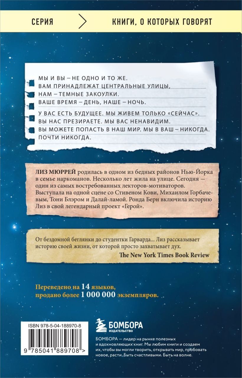 Но некоторым все-таки повезет. Они смогут вырваться из безвыходного тупика бездомной жизни и навсегда изменят свою судьбу. Лиз как раз такой ребенок. Она сумела не только выжить, но и полностью переписала свое будущее.
