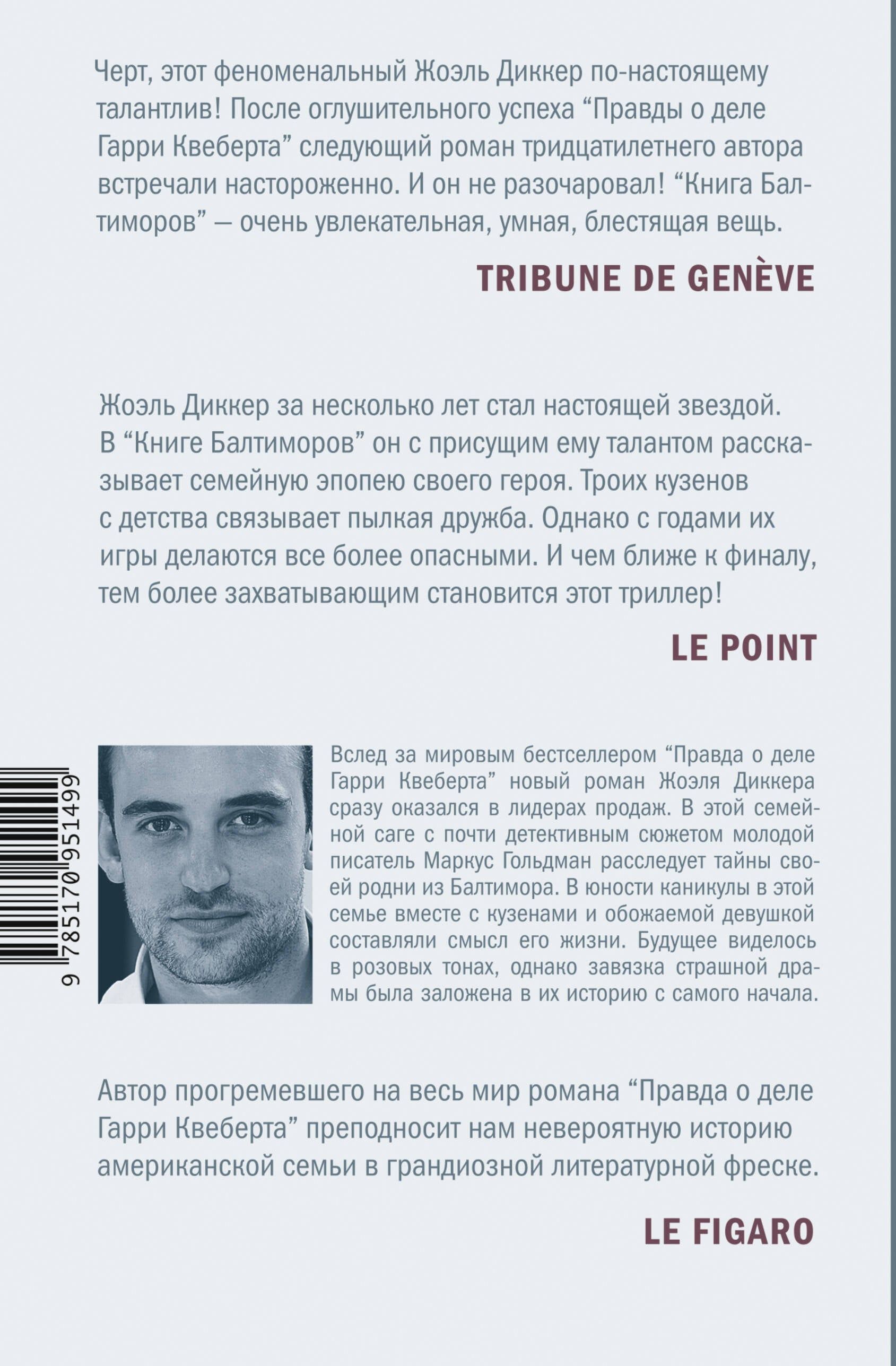 Молодой известный писатель Маркус Гольдман приезжает в свой новый дом во Флориде — просторный, весь в панорамных окнах, на берегу озера — чтобы в спокойствии и тишине работать над новым романом. В одну грозовую ночь к нему на террасу приходит большой добродушный пес, и Гольдман решает его приютить, а на утро отправляется на поиски хозяина. Каково же было его удивление, когда он узнает, что пес принадлежит …Александре Невилл — девушке, в которую он был влюблен долгие годы, теперь известной на всю Америку певице с миллионами поклонников. Случайная встреча возрождает в Маркусе целый ворох воспоминаний: о том, как он еще подростком проводил все каникулы и праздники в доме своего дяди Сола Балтимора вместе со своими двумя обожаемыми кузенами и Александрой, в которую были одновременно влюблены все три мальчика. Но среди этих безмятежных воспоминаний скрыта страшная тайна, трагедия, о которой Маркус столько лет пытался забыть…
