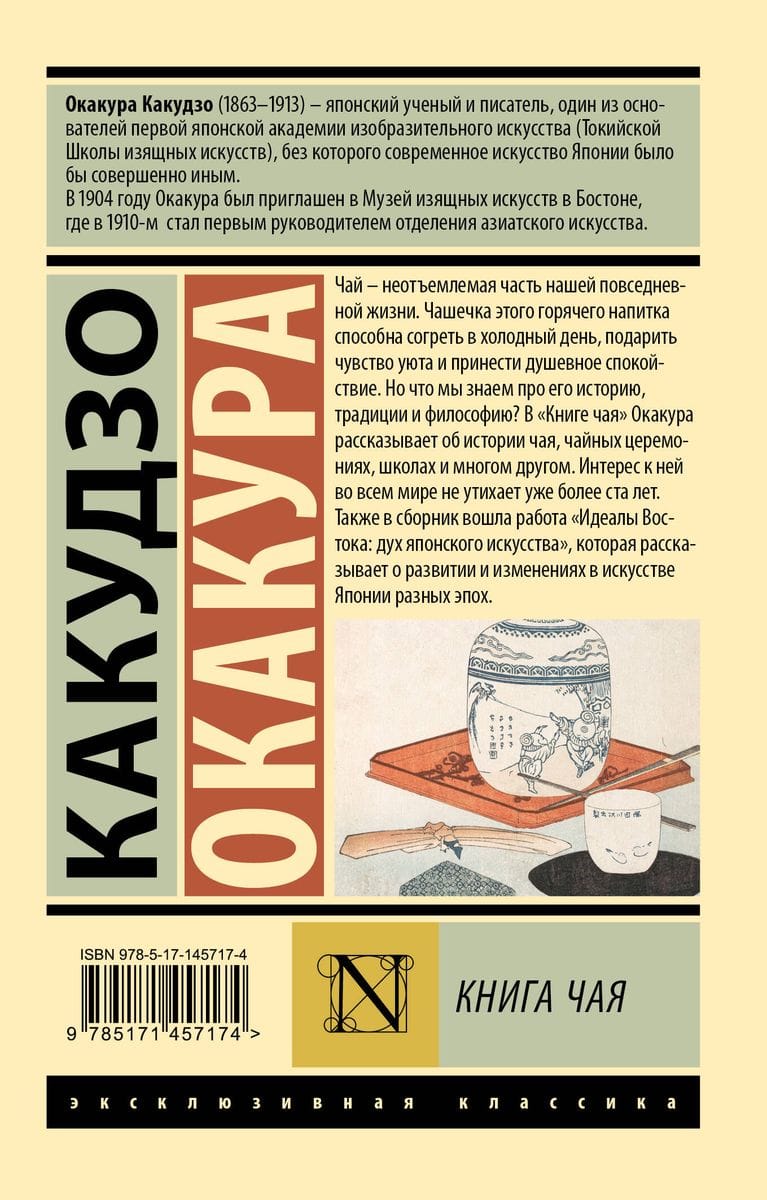 Чай – неотъемлемая часть нашей повседневной жизни. Чашечка этого горячего напитка способна согреть в холодный день, подарить чувство уюта и принести душевное спокойствие. Но что мы знаем про его историю, традиции и философию? В «Книге чая» Окакура рассказывает об истории чая, чайных церемониях, школах и многом другом. Интерес к ней во всем мире не утихает уже более ста лет.