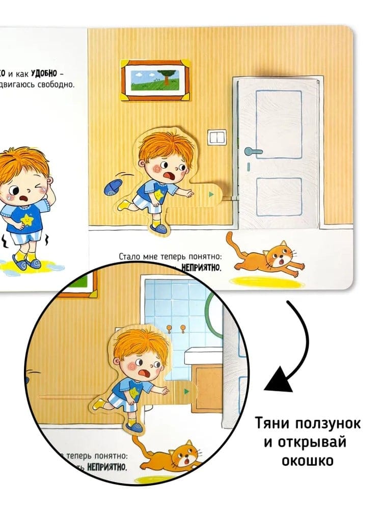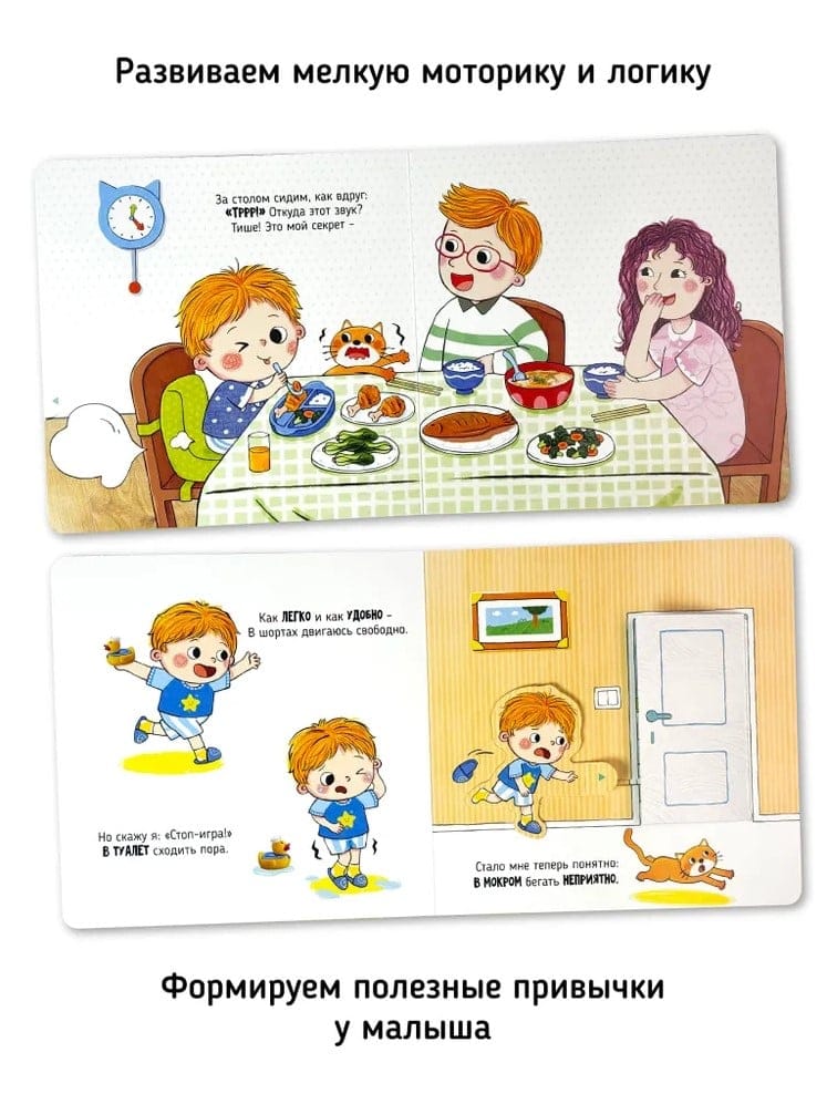 «Пора в туалет» — это увлекательная интерактивная книга из серии Я сам, которая откроет вашему малышу двери в мир самостоятельности! Вместе с дружелюбным героем детской развивашки юные читатели познакомятся с важностью самостоятельного посещения туалета.