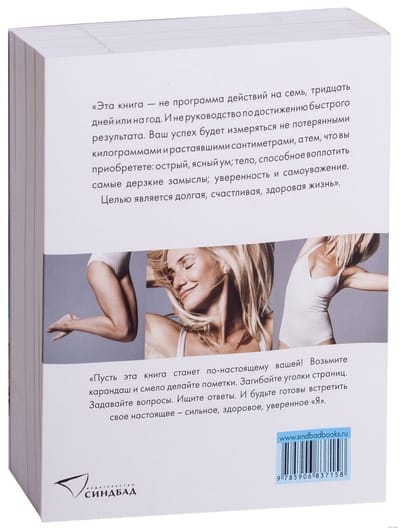 Эта книга - не программа оздоровления, не сборник диет или комплексов физических упражнений. Кэмерон Диас делится в ней своим личным опытом - рассказывает, как стала прислушиваться к своему телу и научилась понимать, любить его и помогать ему. Она убеждена: сильное, выносливое и красивое тело позволит покорить любые вершины - в карьере, в любви, в творчестве. Оно поможет сделать жизнь долгой, здоровой и счастливой. Кэмерон Диас, бывшая модель, ныне "самая известная блондинка Голливуда", дебютировала в кино в 21 год в фильме "Маска" (1994), где успешно сыграла рядом с Джимом Кэрри. Всемирную популярность ей принесли фильмы "Ангелы Чарли", "Все без ума от Мэри", "Банды Нью-Йорка", "Ванильное небо" и другие. Сандра Барк - писательница, автор целого ряда бестселлеров по версии "Нью-Йорк Таймс". Охотно работает в тандеме с увлеченными людьми, помогая им превратить интересные идеи в популярные книги.