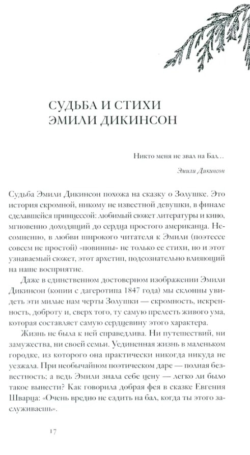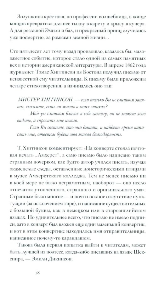 В книге известного поэта и переводчика Григория Кружкова собраны статьи о трех американских поэтах: Эмили Дикинсон, Роберте Фросте и Уоллесе Стивенсе; их по праву можно на звать его пожизненными спутниками. Это очень разные поэты: Эмили Дикинсон, провинциальная отшельница, так и не уви девшая своих стихов в печати; прославленный Роберт Фрост, лауреат четырех Пулитцеровских премий; и Уоллес Стивенс, великий маг и волшебник, всю жизнь скрывавшийся под маской страхового служащего. Этим авторам отдана главная часть кни ги; но в ней нашлось место и для других поэтов XX века: от «трансатлантических» Т. С. Элиота и У. Х. Одена до современ ных американских Чарльза Симика и Кей Райан.