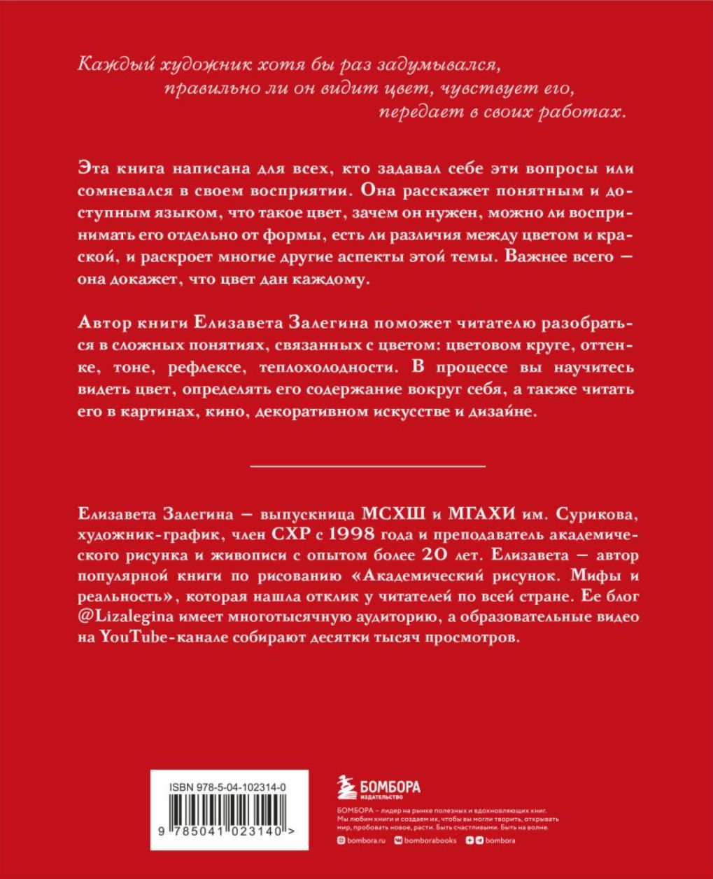 Цвет — это сложное понятие, с которым мы сталкиваемся каждый день, и неотъемлемая часть работы любого художника. Эта книга поможет понять, что мы подразумеваем под этим термином, зачем он нужен и почему не равнозначен краске, как на него влияют свет и тени и многое другое. Автор расскажет, как научиться видеть цвет, работать с ним и «считывать» его в своих и чужих работах, дизайнах и даже кино. Книга будет полезна каждому, кто хочет узнать больше о цвете. Елизавета Залегина, художник, преподаватель со стажем более 20 лет и автор книги «Академический рисунок. Мифы и реальность», поможет найти ответы на связанные с данным понятием вопросы и разобраться в этой сложной теме.