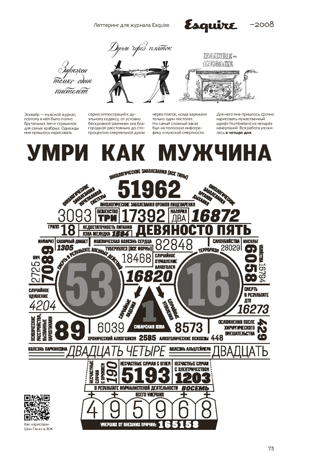 История творческого пути известного российского дизайнера и шрифтовика Юрия Гордона с полезными советами и кейсами. Эта книга – результат работы одного из известнейших разработчиков шрифта в России, Юрия Гордона. В ней он рассказывает свою историю с самого начала – с 1994 года, когда создавался его первый шрифт, до наших дней. Также Юрий делится опытом разработки «Олимпийского шрифта», шрифтов для «Эрмитажа», Digital October, ВШЭ, леттеринга для проекта «Моя Москва» и журналов Esquire, Harpers Bazaar, «Вокруг Света», Rolling Stone и Vogue. Книга легко читается даже непрофессионалами благодаря отличному стилю автора. Способна пробудить в читателе желание попробовать себя в качестве разработчика шрифта, или художника шрифта, как уточняет автор. В новом издании читателей ждет дополнительная глава.
