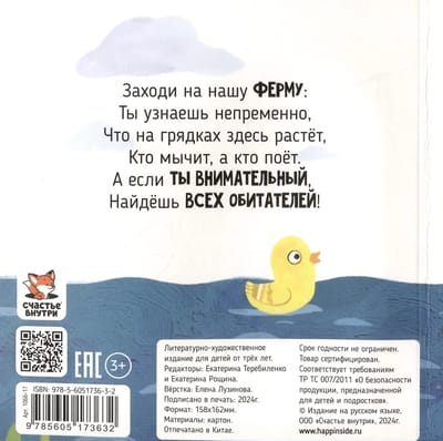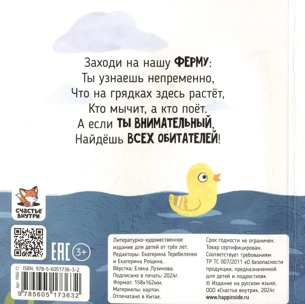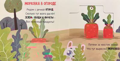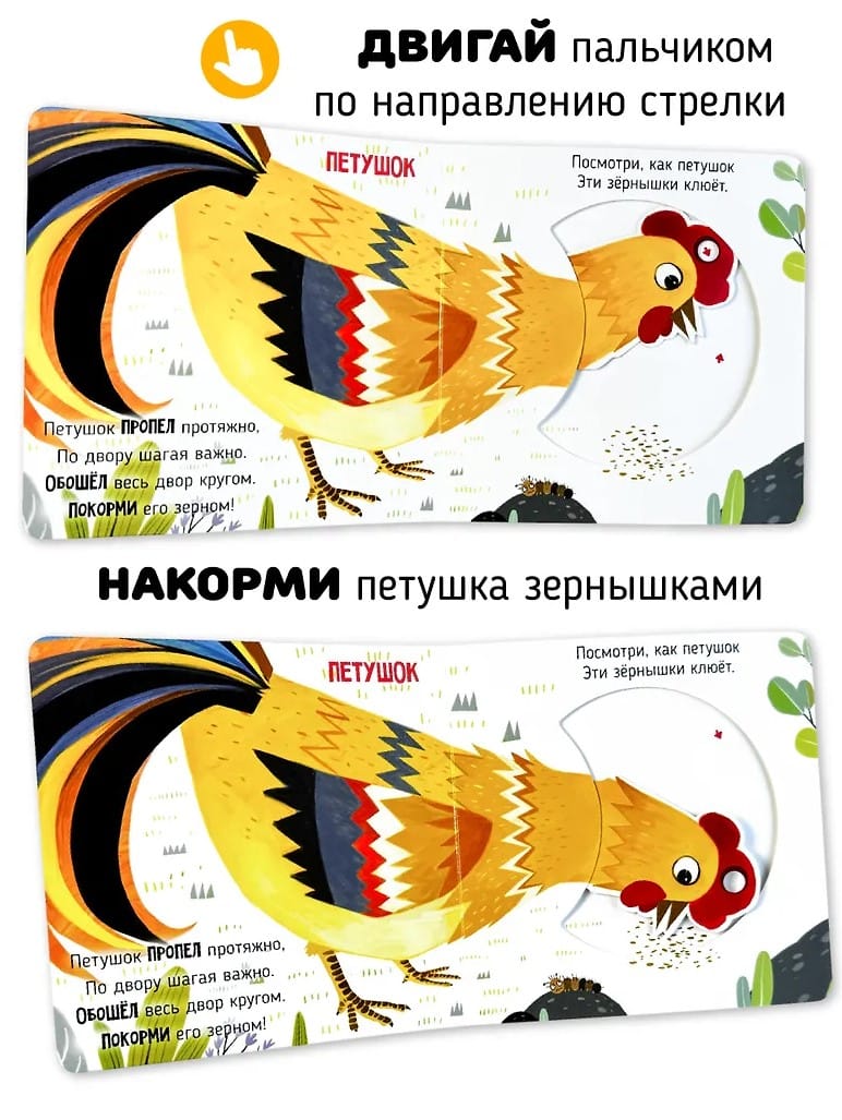Развивающая книга для самых маленьких «В деревне» из серии «Подвигай-ка» познакомит вашего малыша с удивительным миром сельской жизни и занимательного обучения. Детская развивашка будет интересна ребенку уже с полугода, а также с 1 года. С большими подвижными элементами, окошками, она станет идеальным спутником для первых шагов в освоении основ окружающего мира. Заходи на нашу ферму: ты узнаешь непременно, что на грядках здесь растет, кто мычит, а кто поет. А если ты внимательный, найдешь всех обитателей! Книжка-малышка включает 5 крупных интерактивных элементов (морковка, петушок, корова, кролик) и простые задания, которые делают процесс чтения увлекательным.