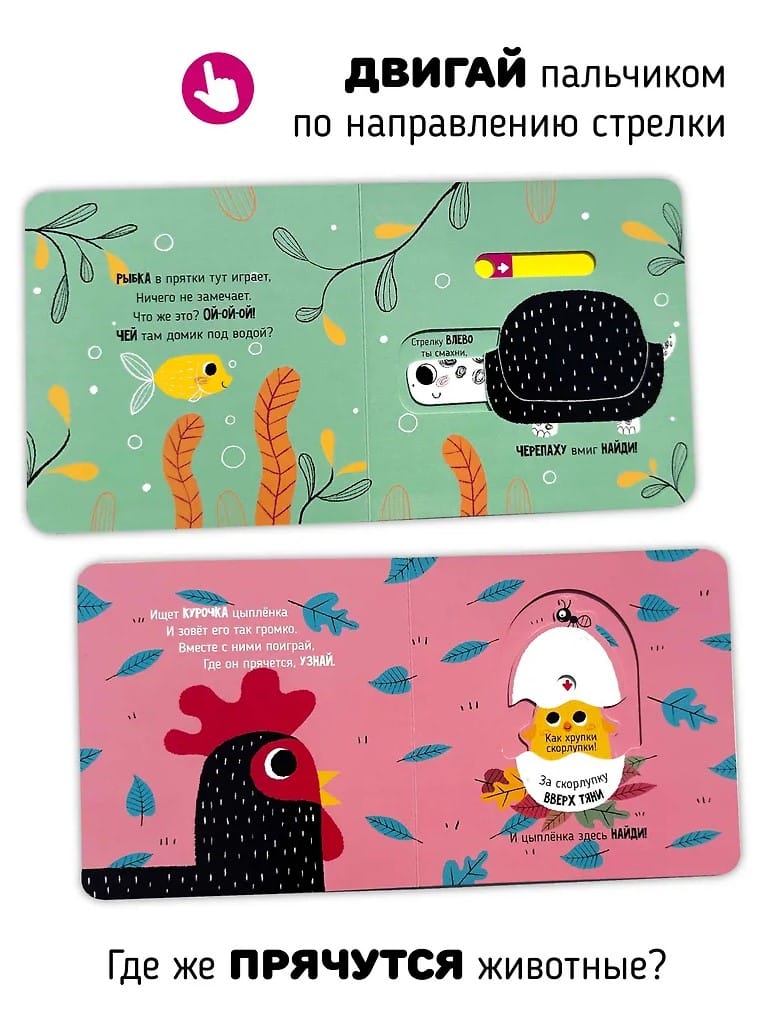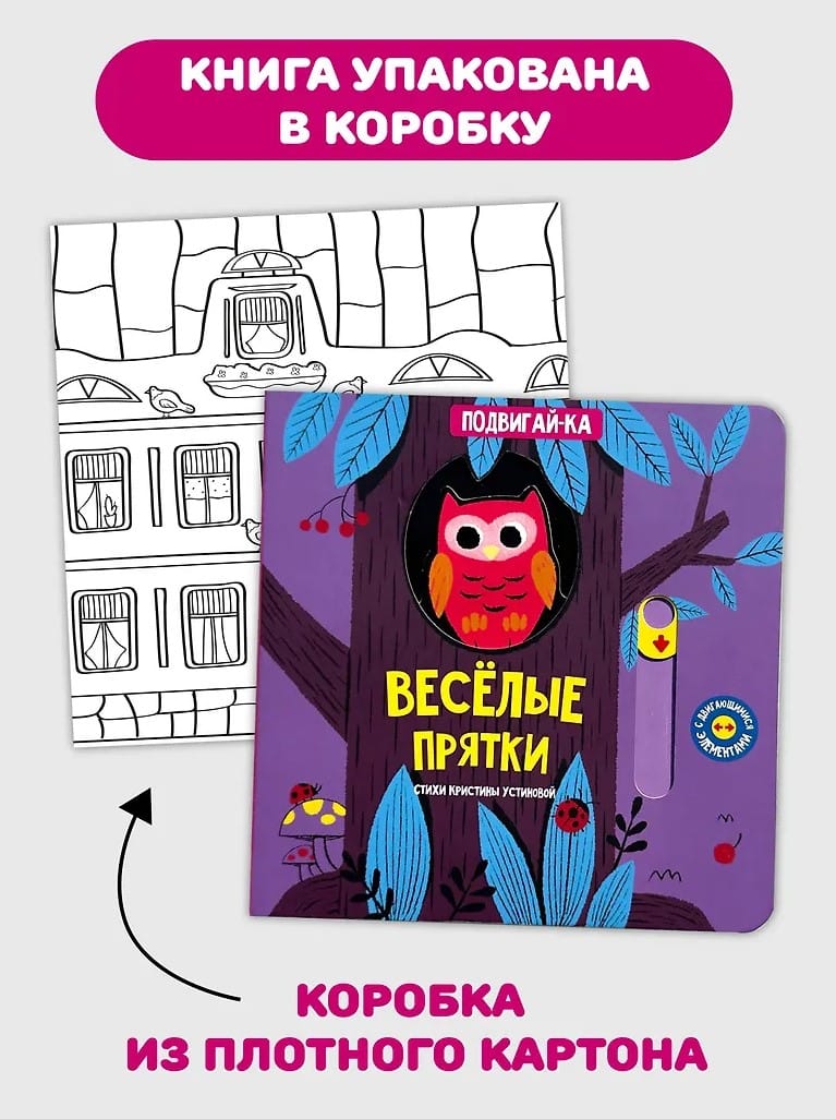Развивающая книга для самых маленьких «Весёлые прятки» из серии «Подвигай-ка» познакомит вашего малыша с удивительным миром животных и занимательного обучения. Детская развивашка будет интересна ребенку уже с полугода, а также с 0-1 года. С большими подвижными элементами, окошками, она станет идеальным спутником для первых шагов в освоении основ окружающего мира.