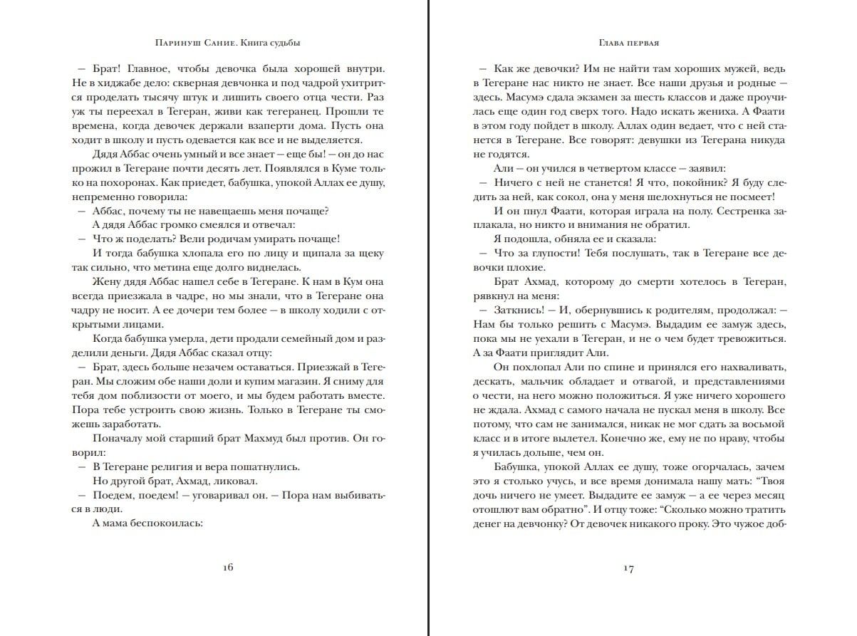 В «Книге судьбы» рассказывается о пяти десятилетиях жизни женщины и одновременно — об истории Ирана, с правления шаха Пехлеви до начала XXI века. Трудная и не всегда счастливая любовь, семья, работа, дети и при этом — постоянный страх за близких, которых преследуют или сажают за решетку, провозглашают героями, но могут и лишить жизни. А рядом — и верные друзья, и предатели, готовые отвернуться от тебя, если от тебя отвернется послушное власти большинство.
