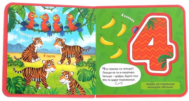 Мягкая книга сделана из приятного на ощупь пористого материала EVA. На каждой странице приклеены яркие иллюстрации с милыми животными и цифрами, которые понравятся малышу.