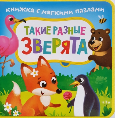 Мягкая книга сделана из приятного на ощупь пористого материала EVA. На каждой странице приклеены яркие иллюстрации с милыми животными, которые понравятся малышу.