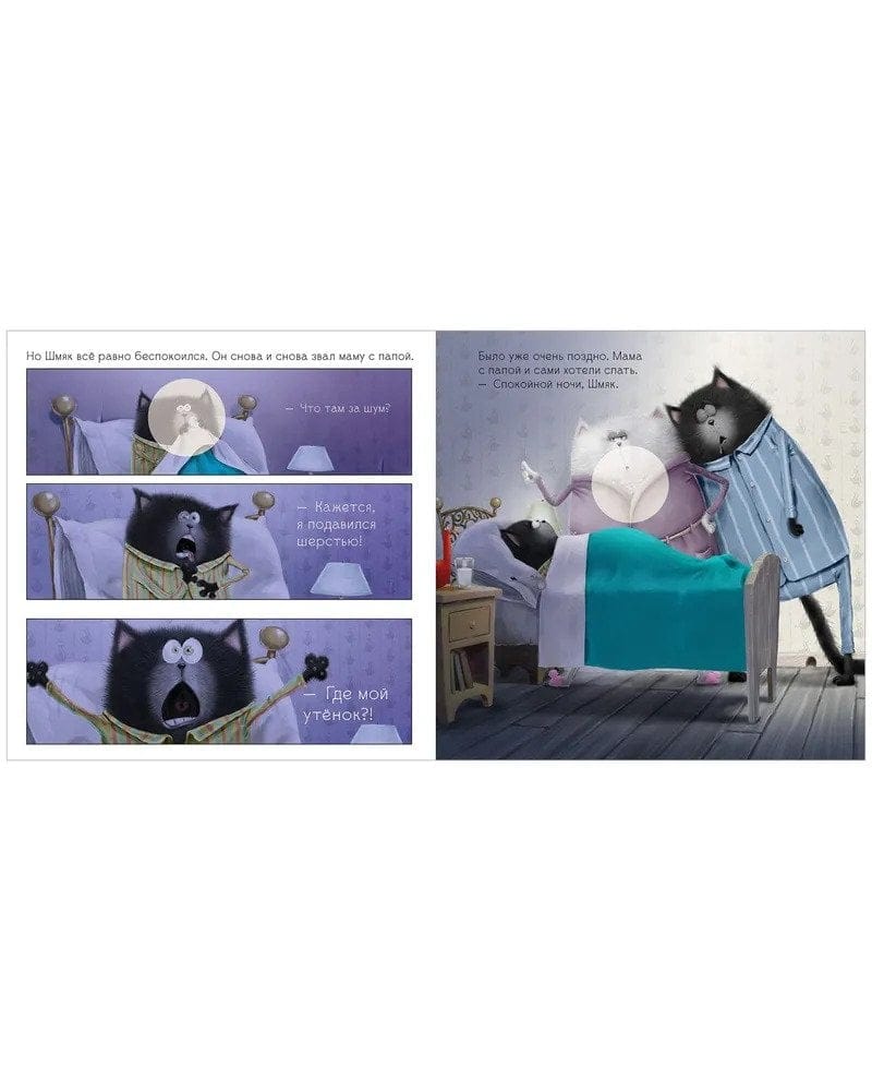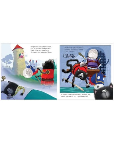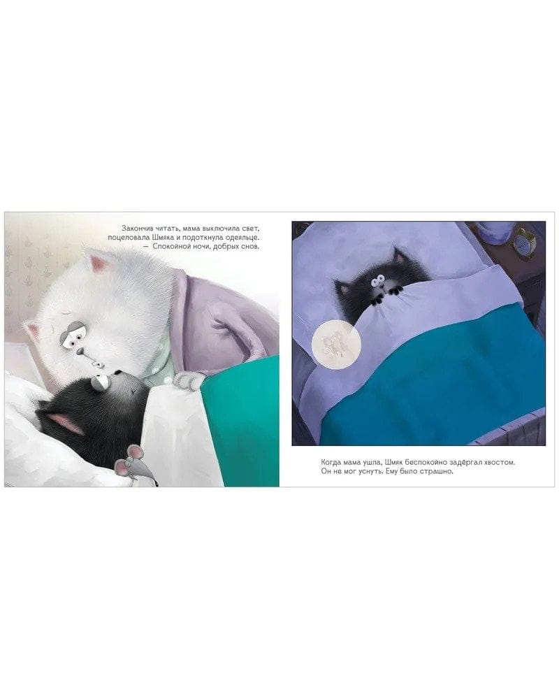 Шмяк обожает слушать сказки мамы перед сном! А больше всего он любит истории о невероятных приключениях отважных котов. Он мечтает быть таким же отважным, сильным и смелым! Но Шмяк еще маленький, и он многого боится. Вот, например, вчера ему приснилось, будто он доблестный рыцарь, который должен спасти принцессу Китти от злого короля Шипа. Но во сне король победил! А что, если и сегодня ему приснится этот пугающий сон? Шмяк ворочался, пытаясь уснуть. Ему вновь приснился все тот же сон, но в этот раз Шмяк победил и стал настоящим героем — теперь ему ничего не страшно! Все дети обожают наклейки, поэтому мы добавили 20 стикеров, которые малыш должен разместить на страничках книги. Читайте, проводите время вместе и веселитесь!