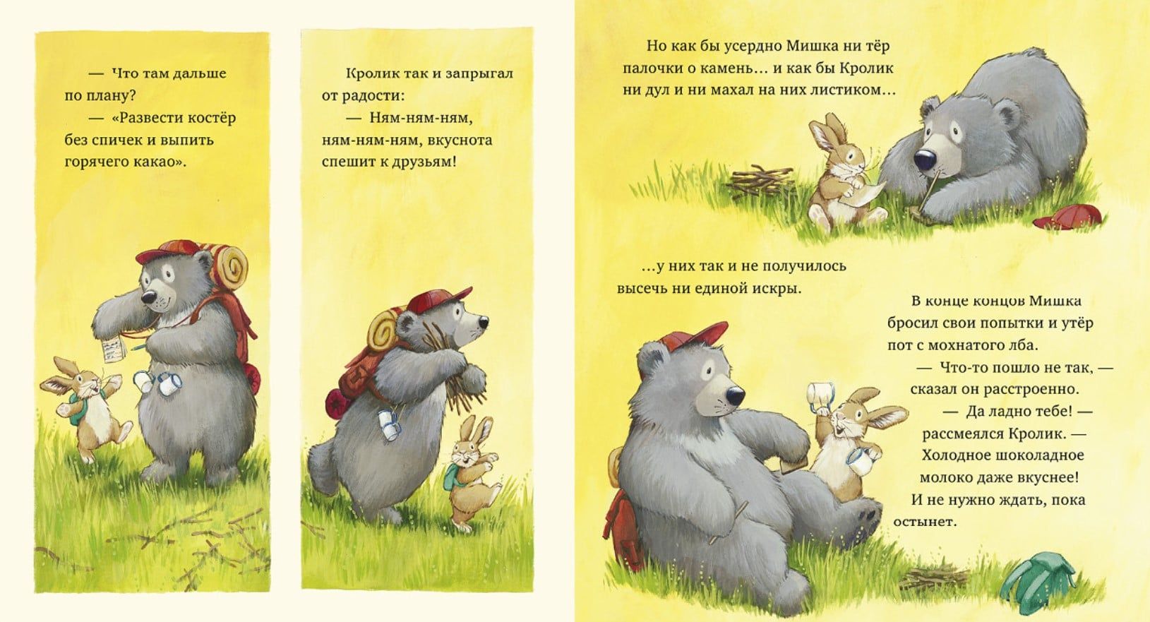 Кролик и Мишка решили отправиться в поход, чтобы посмотреть на самый красивый закат. У них даже есть ИДЕАЛЬНЫЙ ПЛАН — разве может что-то пойти не так? Правда, карта почему-то водит друзей кругами, костер никак не хочет загораться, а палатка — стоять ровно. Неужели поход обернется полным провалом? К счастью, Кролик знает, что делать!