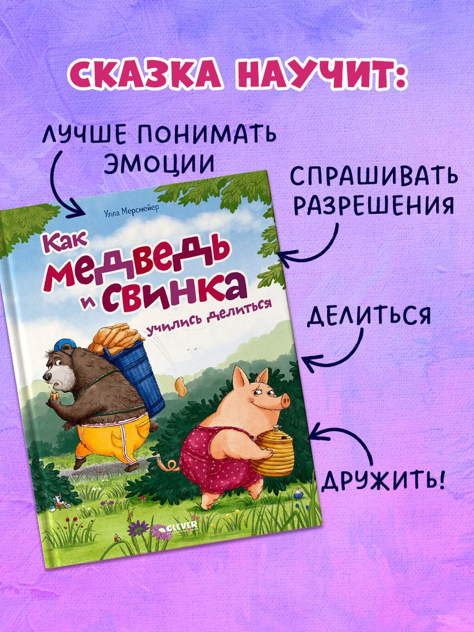 «Как медведь и свинка учились делиться» — книжка-картинка с потрясающими иллюстрациями, которые захочется пересматривать снова и снова, отыскивая все новые детали. Герои живые и эмоциональные, они помогут маленьким читателям научиться понимать чувства и фантазировать.