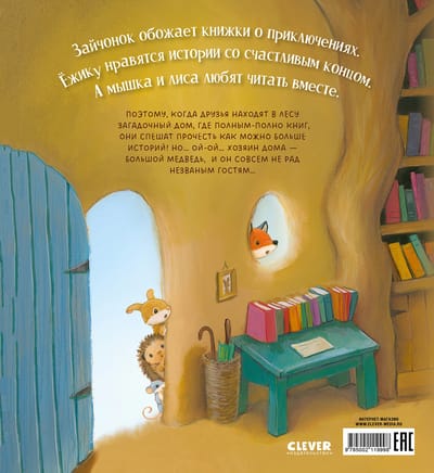 Маленькие жители леса — лисичка, зайчонок, ежик и мышка — обожают читать. Но у них есть всего одна книга. Однажды они решили узнать, откуда берутся книги, и во что бы то ни стало найти их. В лесу они отыскали книжку с адресом владельца. Друзья добрались до дома и увидели там… Именно то, что искали! Но вот хозяин дома оказался не очень-то гостеприимным.