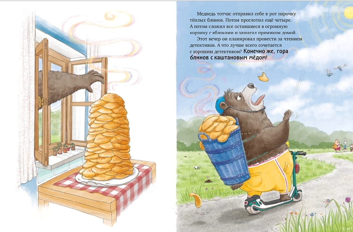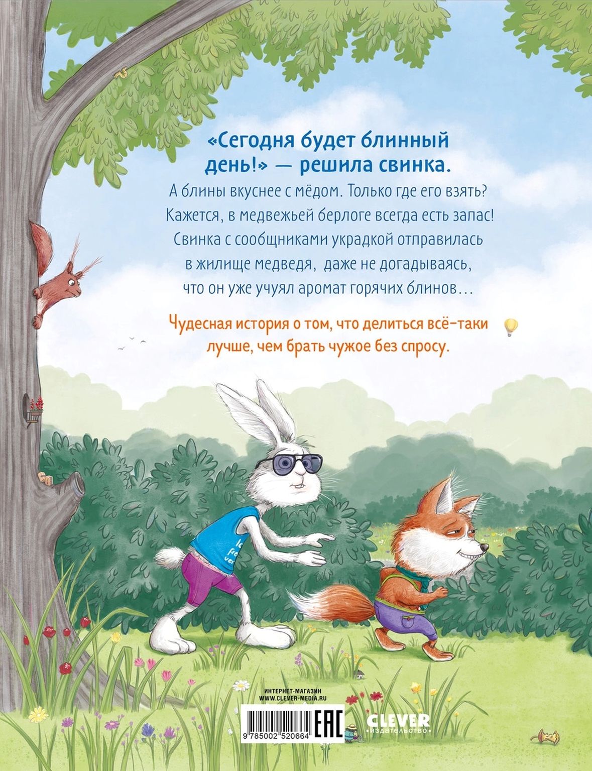 Свинка напекла блинов, но у нее закончился мед, и она решила взять немного у медведя… без спроса. А медведь решил стащить у свинки блины. По дороге друзья-воришки встретились! Что же произошло дальше? Обязательно обсудите с детьми, как важно спрашивать разрешения, если хочешь позаимствовать что-то у друзей.