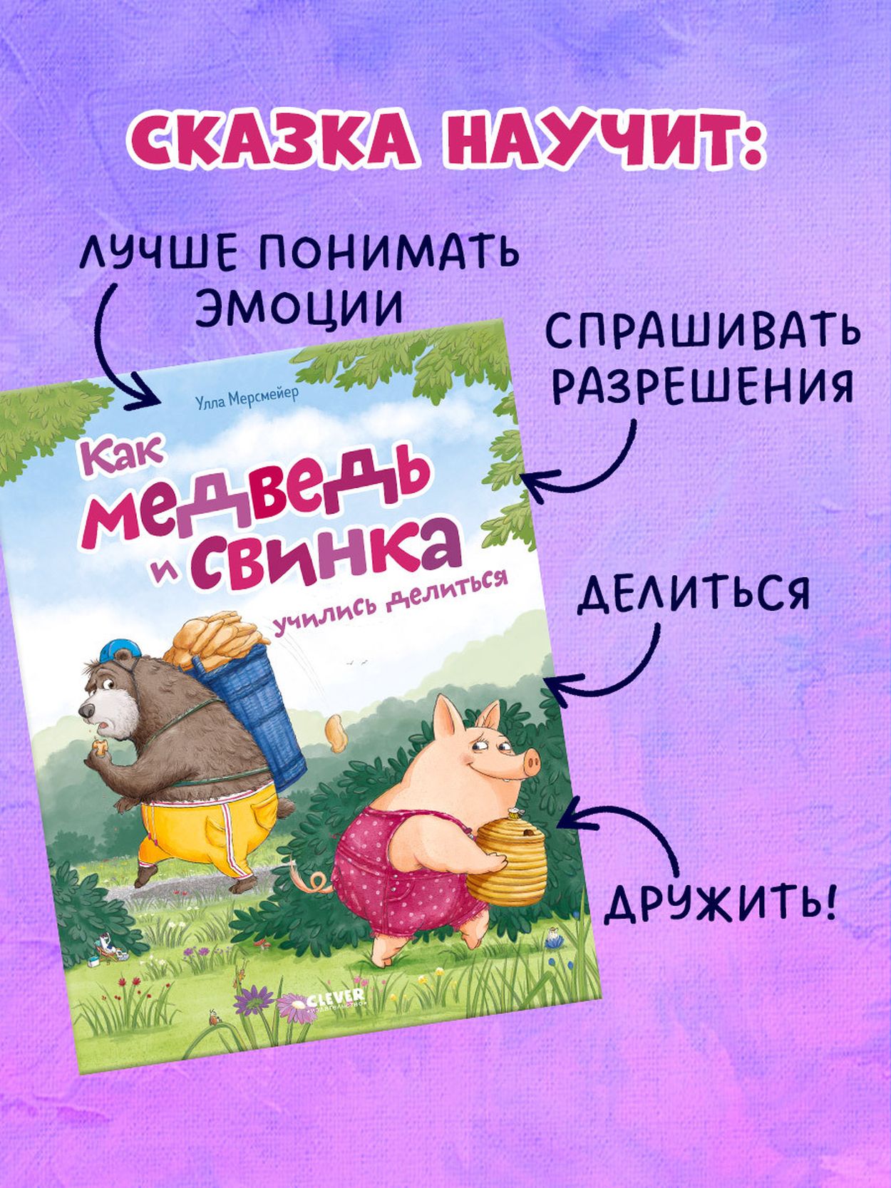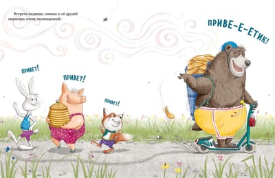 «Как медведь и свинка учились делиться» — это книжка-картинка с потрясающими иллюстрациями, которые захочется пересматривать снова и снова. Герои живые и эмоциональные, они помогут маленьким читателям фантазировать.