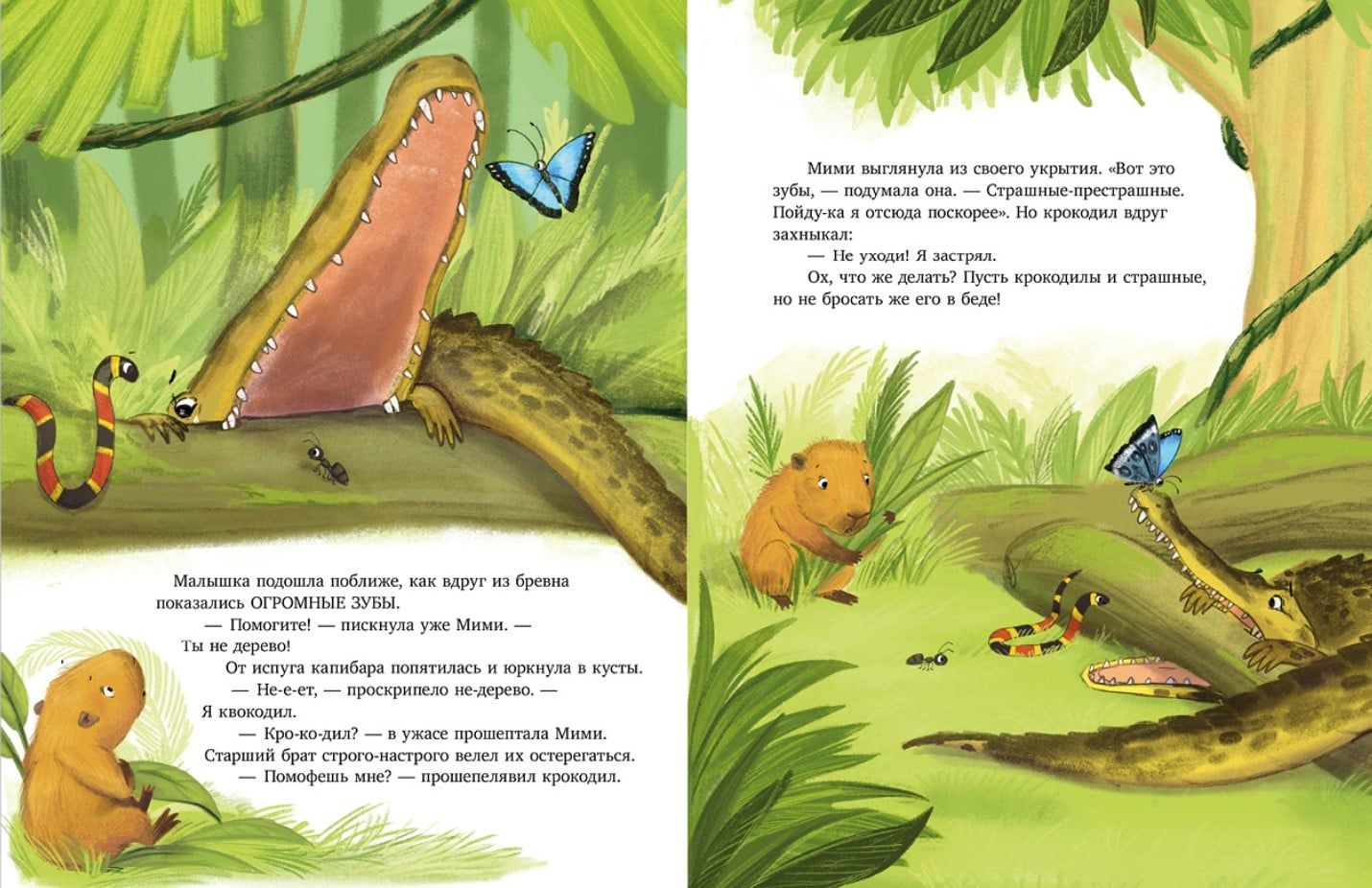 Семья капибары Мими перебирается на новое место, но малышка совсем этому не рада. Она боится перемен и очень стесняется заводить друзей. Всё меняется, когда Мими слышит в джунглях чей-то крик о помощи: в беду попал большой зубастый крокодил! Сможет ли Мими преодолеть страх и выручить его?