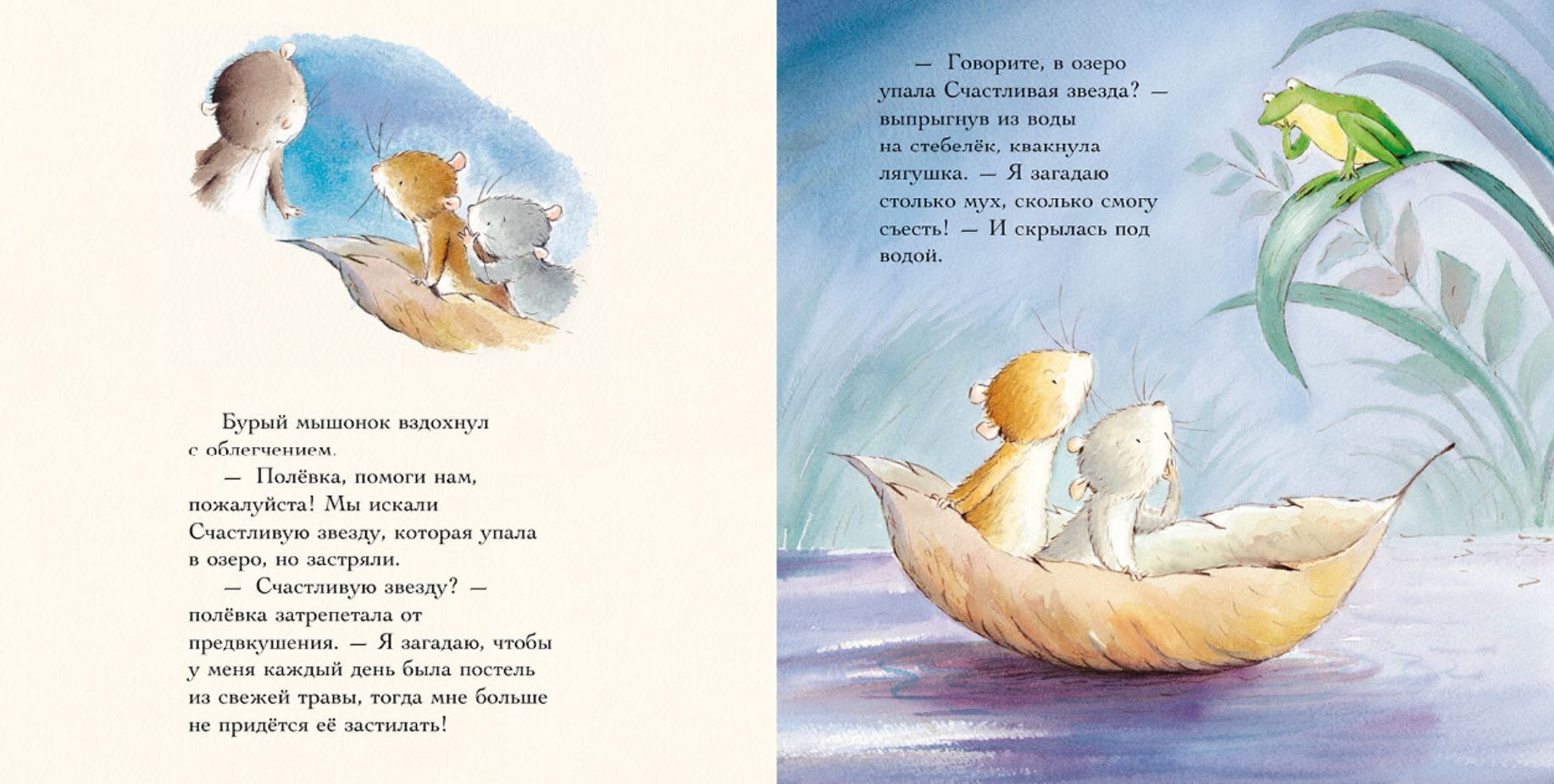 Два мышонка — лучшие друзья, других таких нет на свете! Однажды они увидели Счастливую звезду, которая исполняет желания. Она пронеслась по ночному небу и упала в озеро. Скорее, на поиски! Но вот беда: звездочка одна, а желаний у друзей много… Какое же из них самое важное?