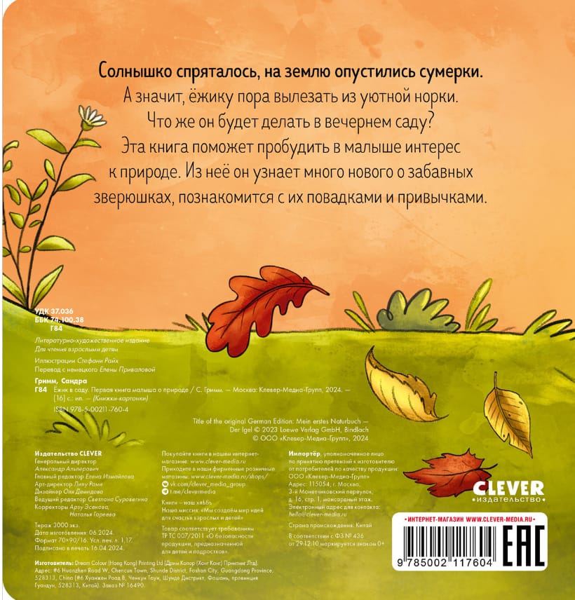 «Ежик в саду. Первая книга малыша о природе» — это и книжка об окружающем мире, и милая познавательная история с красивыми нежными иллюстрациями.