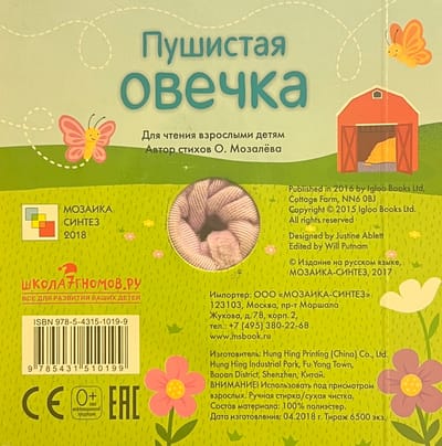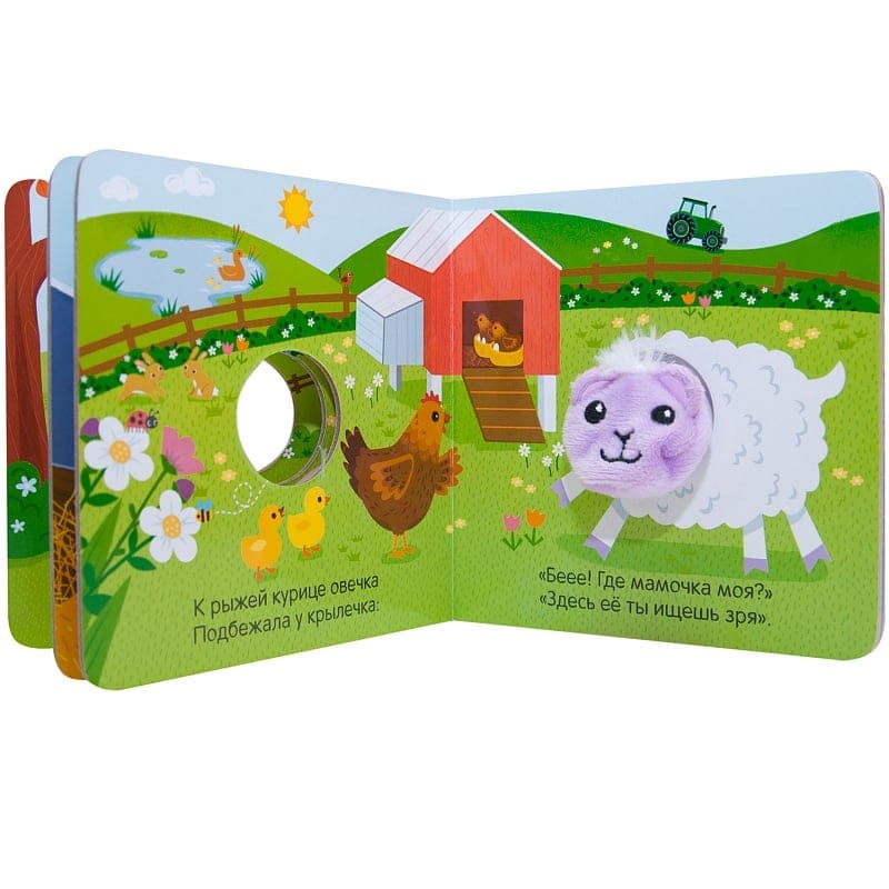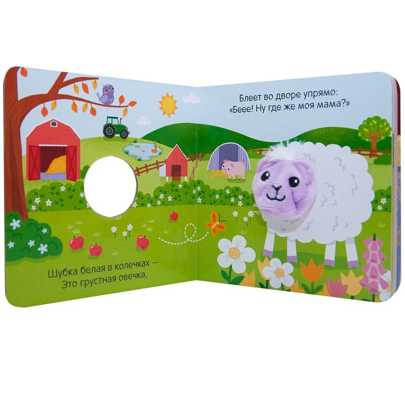 Знакомьтесь: пушистая овечка! Забавная книга с пальчиковой куклой обязательно станет любимой. Ваш малыш сможет не только познакомиться, но и поиграть с очаровательной овечкой: детям очень нравится, когда овечка прячет, а потом снова высовывает голову и трется мордочкой о детскую ладошку. Веселые стихи расскажут о приключениях пушистой овечки. Читая их и показывая картинки, Вы сможете инсценировать происходящее и от имени героя общаться с ребенком. Такая игра способствует развитию фантазии и воображения. Книжка с закругленными краями на плотном картоне абсолютно безопасна и будет долго радовать маленького читателя.