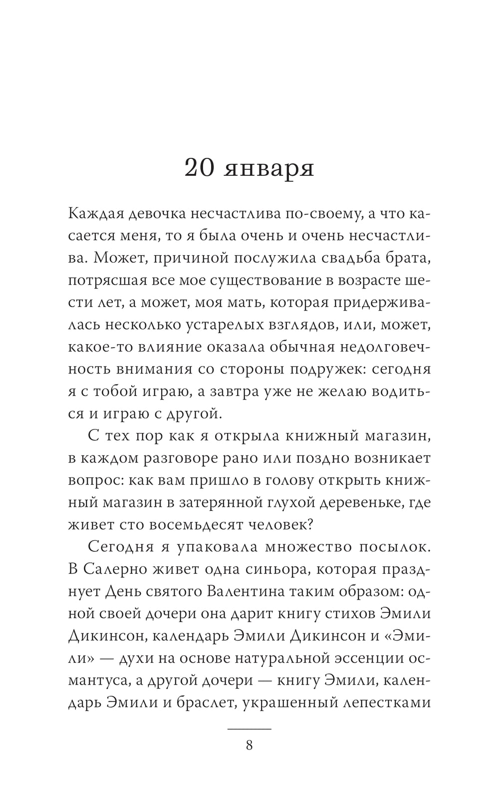 Волшебная книга о дивном месте, которое существует на самом деле. Магазинчик с книгами в крошечной деревушке, затерянной среди холмов Тосканы - маленький, но полный чудес, будто сундучок с сокровищами. В жизни этого магазинчика есть все - от бегущих в него со всех ног детей до необыкновенных литературных джемов, от Эмили Дикинсон до современной итальянской писательницы Пии Перы. Дни его наполнены теплом, жизнью, удивительными историями и словами, которые, соединяясь в строчки, становятся той чарующей нитью, что привязывает нас навсегда: комната, полная книг, становится порогом, ведущим нас в бескрайний удивительный мир.