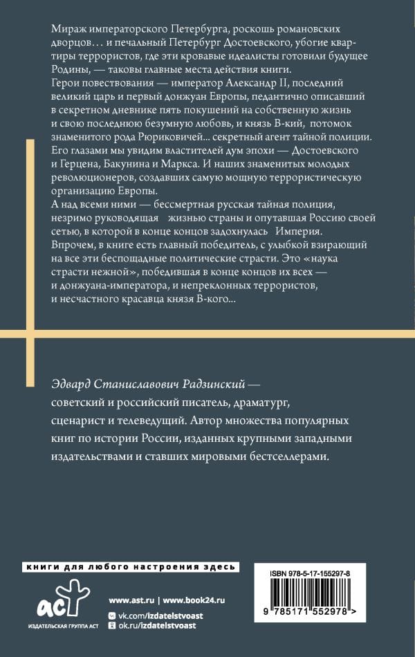 Мираж императорского Петербурга, роскошь романовских дворцов… и печальный Петербург Достоевского, убогие квартиры террористов, где эти кровавые идеалисты готовили будущее Родины, — таковы главные места действия книги.